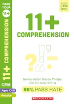 “Great quality, imaginatively written”Dr Samina Rashid, 11+ tutor Prepare for the CEM 11+ tests with these authentic multiple-choice comprehension tests. Packed with challenging comprehension questions covering fiction and non-fiction, these papers will help to sharpen skills such as inference and deduction, which are an essential part of the CEM test. Contains both fiction and non-fiction comprehension tests along with answer sheets and short answer grids. Authentic multiple choice format Mix of fiction and non-fiction texts Covers the comprehension skills required for success in the 11+ Supplied as a pack of six copies.