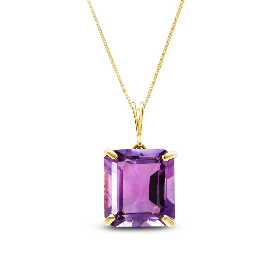 Amethyst Pendant Necklace handcrafted in solid gold. Single 6.5 ct genuine amethyst. Emerald cut. The pendant is suspended from a gold box chain with spring clasp. Size: 9.9 x 19.3 mm (0.39 x 0.76 in). Material: 9ct Gold. Total metal weight: 2.9 gr. 1 emerald cut amethyst (12 x 10 mm) = 6.5 ct. Colour: Purple. Stone cut: Emerald Cut. Anniversary: 6th Anniversary. Birthstone: February.