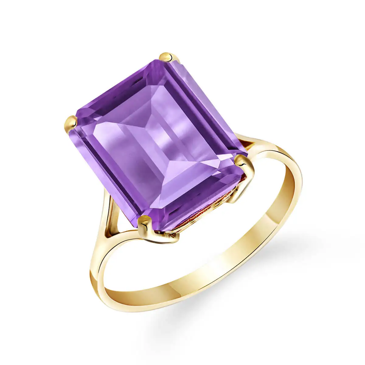 Amethyst Ring handcrafted in solid gold. Single 6.5 ct genuine amethyst. Emerald cut. Available from sizes H to Z including half sizes. Size: 12.2 mm (0.48 in). Material: 9ct Gold. Total metal weight: 2.1 gr. 1 emerald cut amethyst (12 x 10 mm) = 6.5 ct. Colour: Purple. Stone cut: Emerald Cut. Anniversary: 6th Anniversary. Birthstone: February.