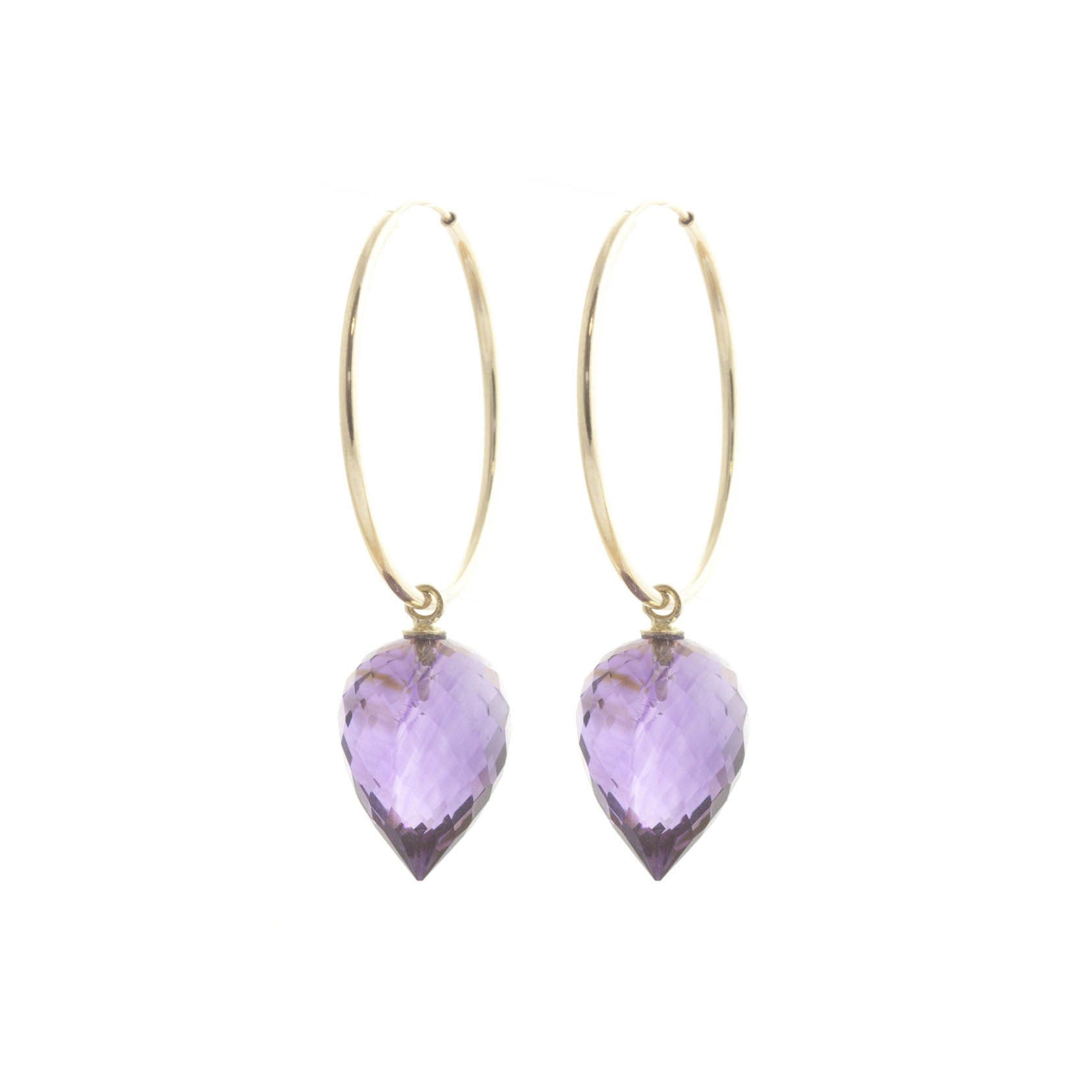 Amethyst Drop Earrings handcrafted in solid gold. Two genuine amethysts, total 19 ct for both earrings combined. Pointed briolette cut. Size: 9.9 x 40.6 mm (0.39 x 1.6 in). Material: 9ct Gold. Total metal weight: 3.8 gr. 2 pointed briolette cut amethysts (15 x 10 mm) = 19 ct total for pair. Colour: Purple. Stone cut: Pointed Briolette Cut. Anniversary: 6th Anniversary. Birthstone: February.