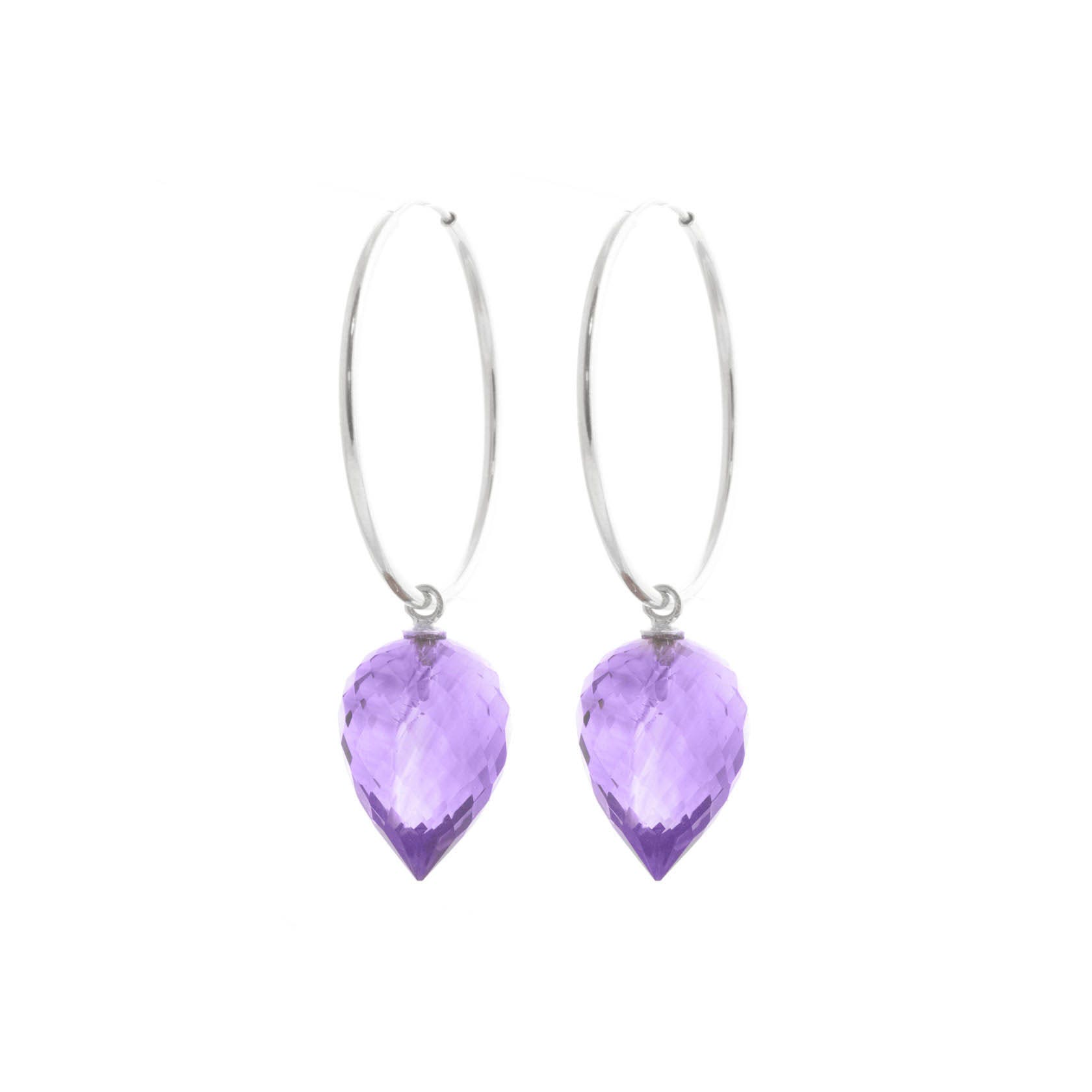 Amethyst Drop Earrings handcrafted in solid white gold. Two genuine amethysts, total 19 ct for both earrings combined. Pointed briolette cut. Size: 9.9 x 40.6 mm (0.39 x 1.6 in). Material: 9ct White Gold. Total metal weight: 3.8 gr. 2 pointed briolette cut amethysts (15 x 10 mm) = 19 ct total for pair. Colour: Purple. Stone cut: Pointed Briolette Cut. Anniversary: 6th Anniversary. Birthstone: February.