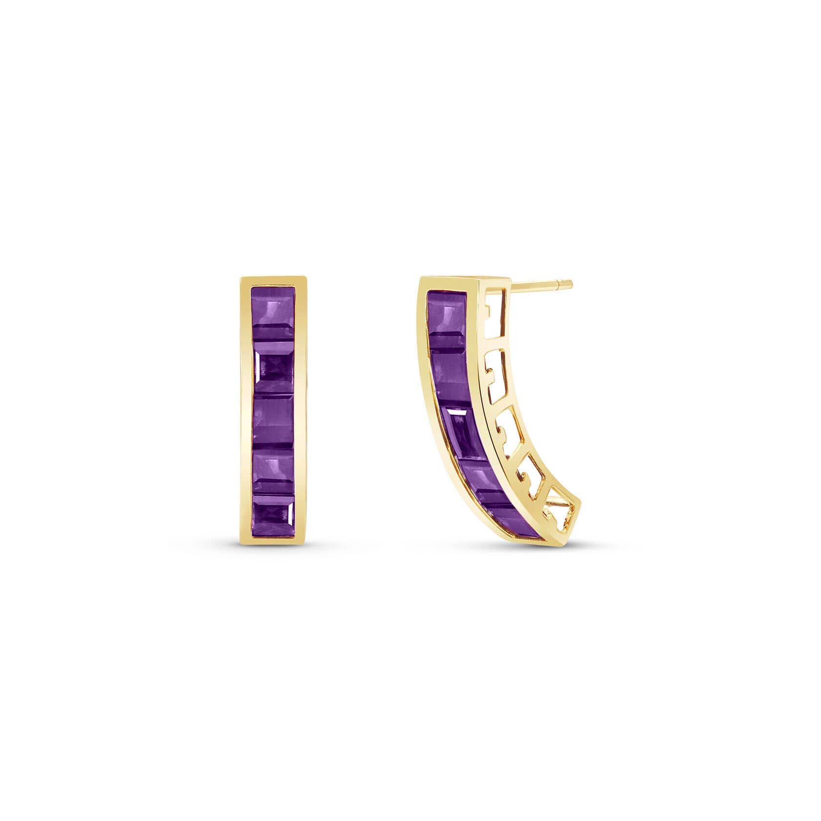Amethyst Stud Earrings handcrafted in solid gold. Ten genuine amethysts, total 4.5 ct for both earrings combined. Square cut. Post with friction back to fasten. Size: 5.1 x 20.3 mm (0.2 x 0.8 in). Material: 9ct Gold. Total metal weight: 2.3 gr. 10 square cut amethysts (4 x 4 mm) = 4.5 ct total for pair. Colour: Purple. Stone cut: Square Cut. Anniversary: 6th Anniversary. Birthstone: February.