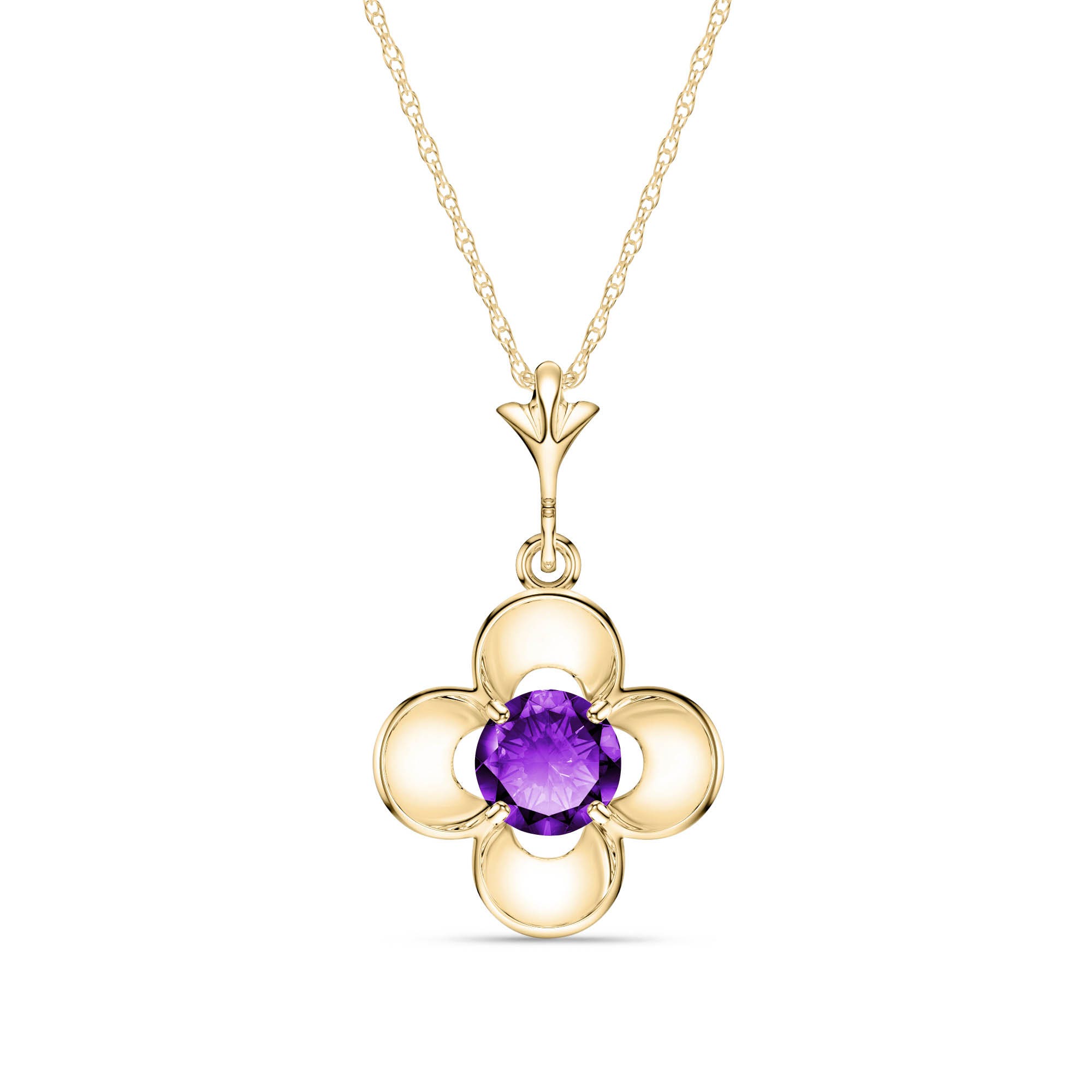 Amethyst Pendant Necklace handcrafted in solid gold. Single 0.55 ct genuine amethyst. Round cut. The pendant is suspended from a gold double link rope chain with spring clasp. Size: 11.4 x 19.1 mm (0.45 x 0.75 in). Material: 9ct Gold. Total metal weight: 1.54 gr. 1 round cut amethyst (5 x 5 mm) = 0.55 ct. Colour: Purple. Stone cut: Round Cut. Anniversary: 6th Anniversary. Birthstone: February.
