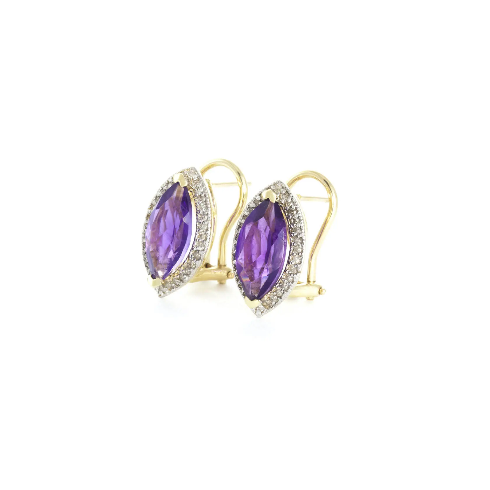 Amethyst & Diamond French Clip Earrings handcrafted in solid gold. Two genuine amethysts, total 3.3 ct, 60 diamonds, total 0.3 ct for both earrings combined. Marquise cut. Size: 9.9 x 16 mm (0.39 x 0.63 in). Material: 9ct Gold. Total metal weight: 3.8 gr. 2 marquise cut amethysts (12 x 6 mm) = 3.3 ct total for pair. 60 round cut diamonds (K colour, I3 clarity) = 0.3 ct total for pair. Colour: Purple. Stone cut: Marquise Cut. Anniversary: 6th Anniversary. Birthstone: February.