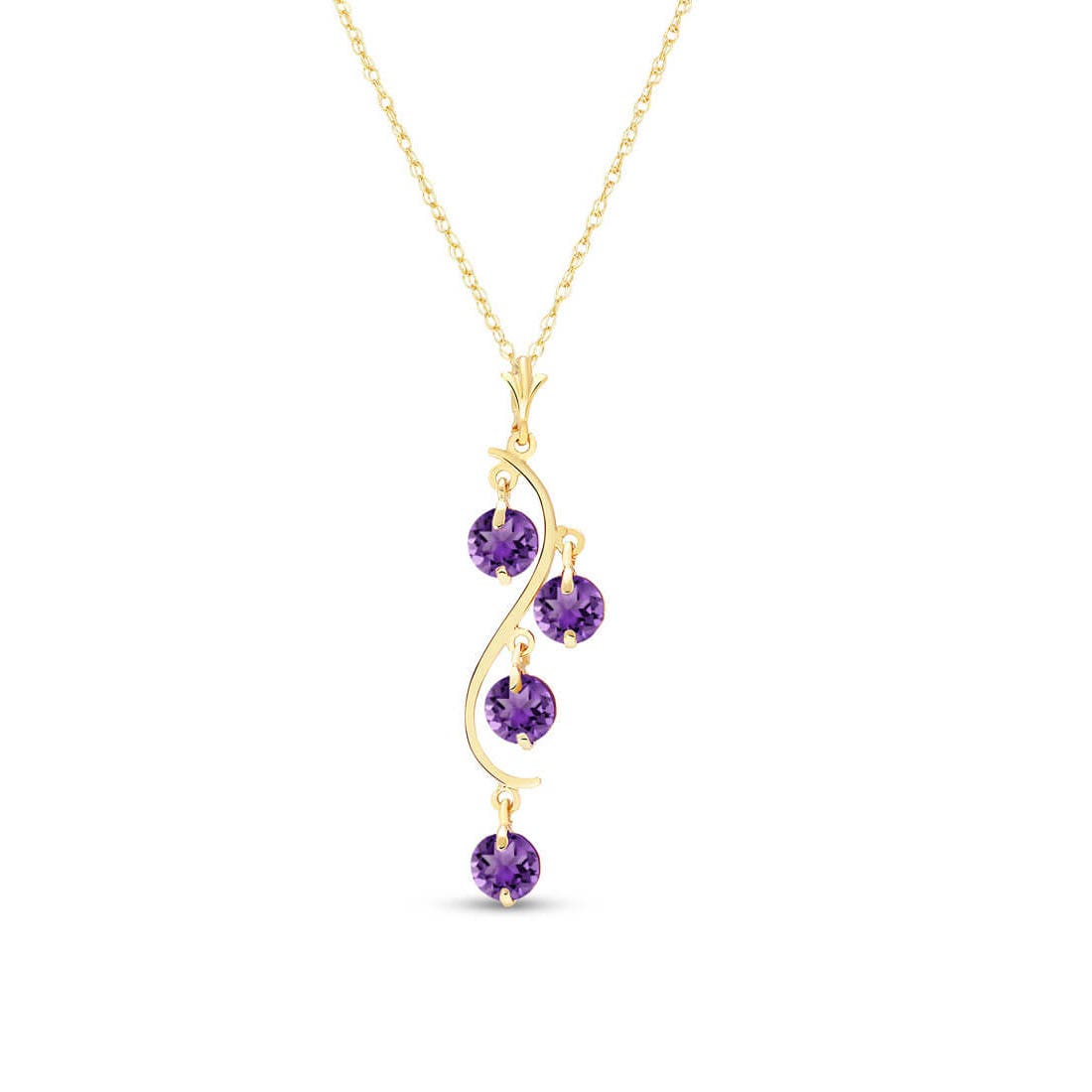 Amethyst Pendant Necklace handcrafted in solid gold. Four genuine amethysts, total 2.25 ct. Round cut. The pendant is suspended from a gold double link rope chain with spring clasp. Size: 11.4 x 37.8 mm (0.45 x 1.49 in). Material: 9ct Gold. Total metal weight: 2.14 gr. 4 round cut amethysts (5 x 5 mm) = 2.25 ct total. Colour: Purple. Stone cut: Round Cut. Anniversary: 6th Anniversary. Birthstone: February.