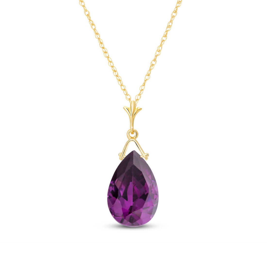 Amethyst Pendant Necklace handcrafted in solid gold. Single 5.1 ct genuine amethyst. Briolette cut. The pendant is suspended from a gold double link rope chain with spring clasp. Size: 10.2 x 24.4 mm (0.4 x 0.96 in). Material: 9ct Gold. Total metal weight: 1.94 gr. 1 briolette cut amethyst (15 x 10 mm) = 5.1 ct. Colour: Purple. Stone cut: Briolette Cut. Anniversary: 6th Anniversary. Birthstone: February.