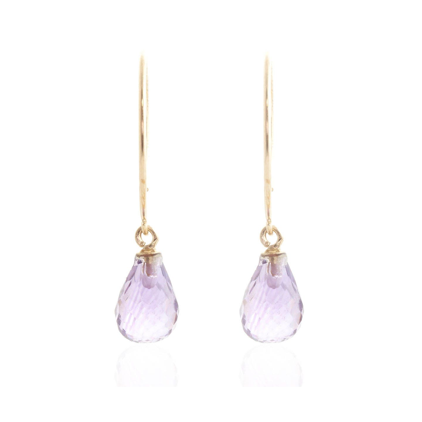 Amethyst Hoop Circle Wire Earrings handcrafted in solid gold. Two genuine amethysts, total 1.35 ct for both earrings combined. Briolette cut. Size: 5.1 x 24.1 mm (0.2 x 0.95 in). Material: 9ct Gold. Total metal weight: 0.9 gr. 2 briolette cut amethysts (7 x 5 mm) = 1.35 ct total for pair. Colour: Purple. Stone cut: Briolette Cut. Anniversary: 6th Anniversary. Birthstone: February.