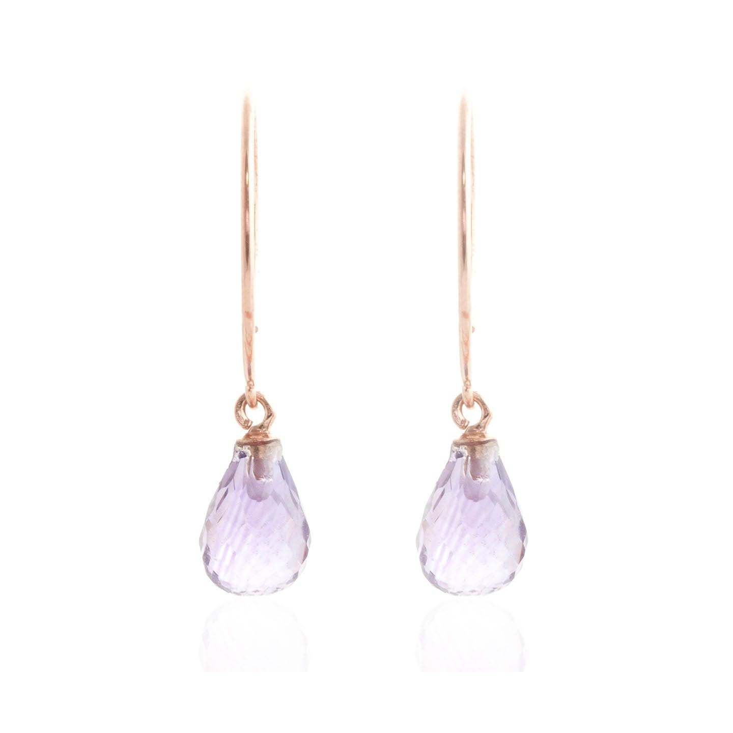 Amethyst Hoop Circle Wire Earrings handcrafted in rose gold plated 9ct gold. Two genuine amethysts, total 1.35 ct for both earrings combined. Briolette cut. Size: 5.1 x 24.1 mm (0.2 x 0.95 in). Material: 9ct Rose Gold. Total metal weight: 0.9 gr. 2 briolette cut amethysts (7 x 5 mm) = 1.35 ct total for pair. Colour: Purple. Stone cut: Briolette Cut. Anniversary: 6th Anniversary. Birthstone: February.