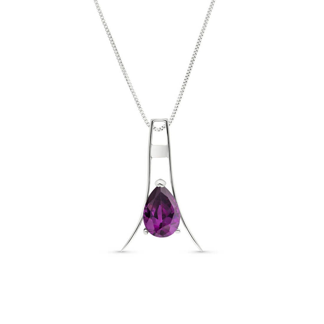 Amethyst Pendant Necklace handcrafted in solid white gold. Single 1.5 ct genuine amethyst. Pear cut. The pendant hangs from a white gold box chain with spring clasp. Size: 13.2 x 22.1 mm (0.52 x 0.87 in). Material: 9ct White Gold. Total metal weight: 2.4 gr. 1 pear cut amethyst (9 x 6 mm) = 1.5 ct. Colour: Purple. Stone cut: Pear Cut. Anniversary: 6th Anniversary. Birthstone: February.