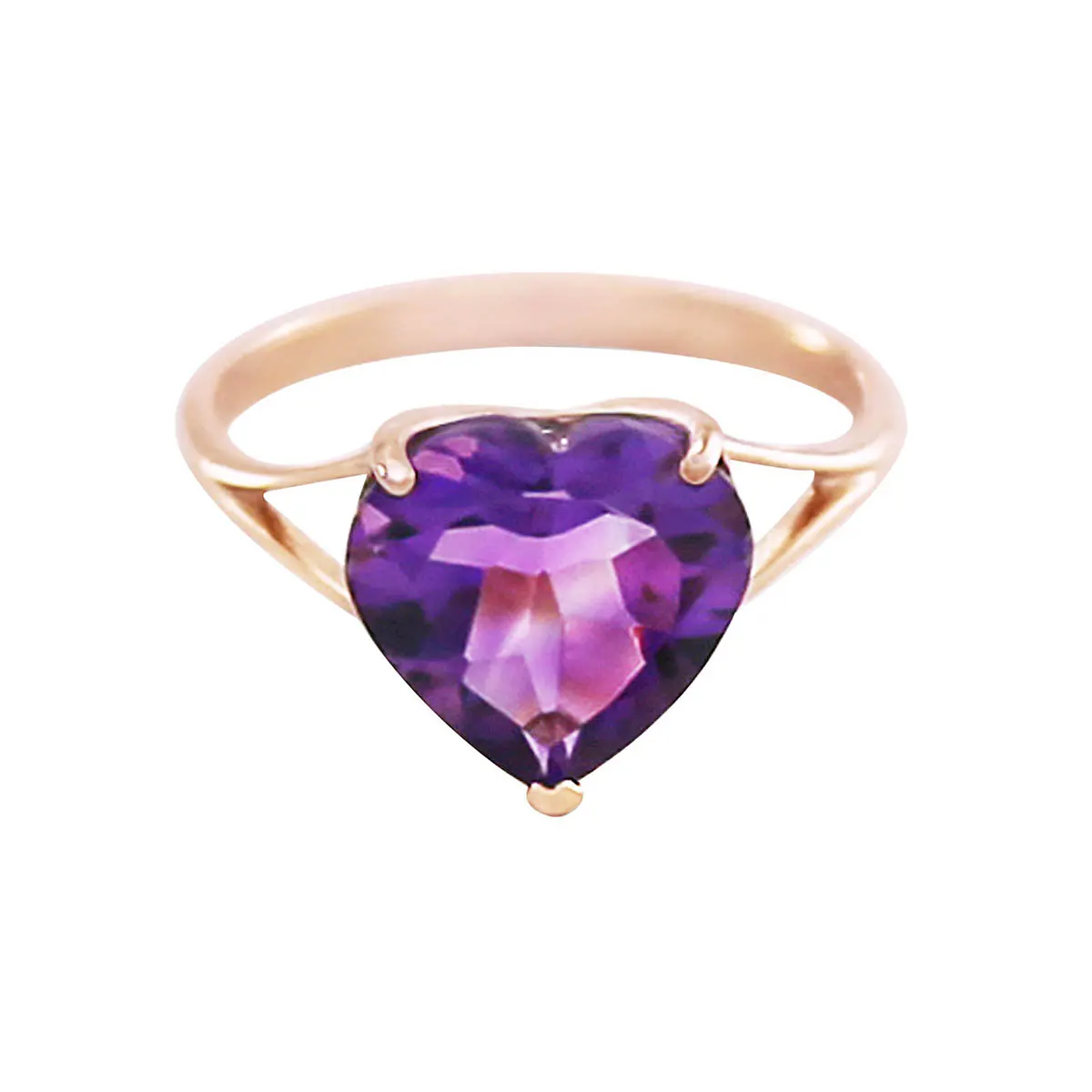Amethyst Ring handcrafted in solid 18ct rose gold. Single 3.1 ct genuine amethyst. Heart shaped. Available from sizes H to Z including half sizes. Size: 10.4 mm (0.41 in). Material: 18ct Rose Gold. Total metal weight: 2.8 gr. 1 heart shaped amethyst (10 x 10 mm) = 3.1 ct. Colour: Purple. Stone cut: Heart Shaped. Anniversary: 6th Anniversary. Birthstone: February.