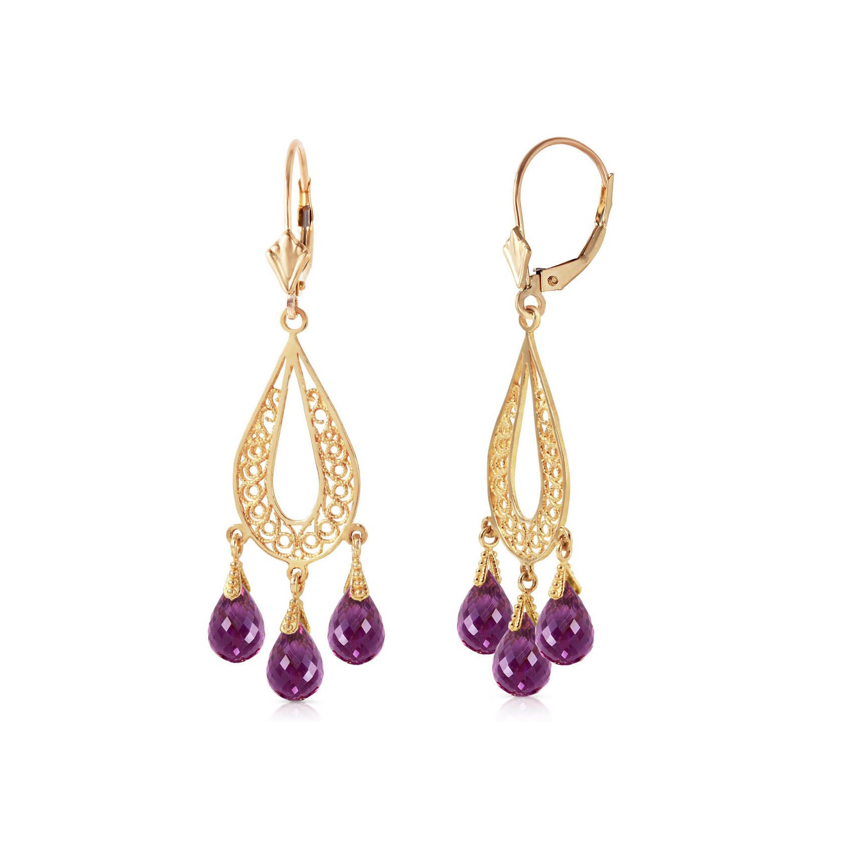 Amethyst Chandelier Earrings handcrafted in solid gold. Six genuine amethysts, total 3.75 ct for both earrings combined. Briolette cut. Size: 13.7 x 41.9 mm (0.54 x 1.65 in). Material: 9ct Gold. Total metal weight: 2.0 gr. 6 briolette cut amethysts (5 x 3 mm) = 3.75 ct total for pair. Colour: Purple. Stone cut: Briolette Cut. Anniversary: 6th Anniversary. Birthstone: February.