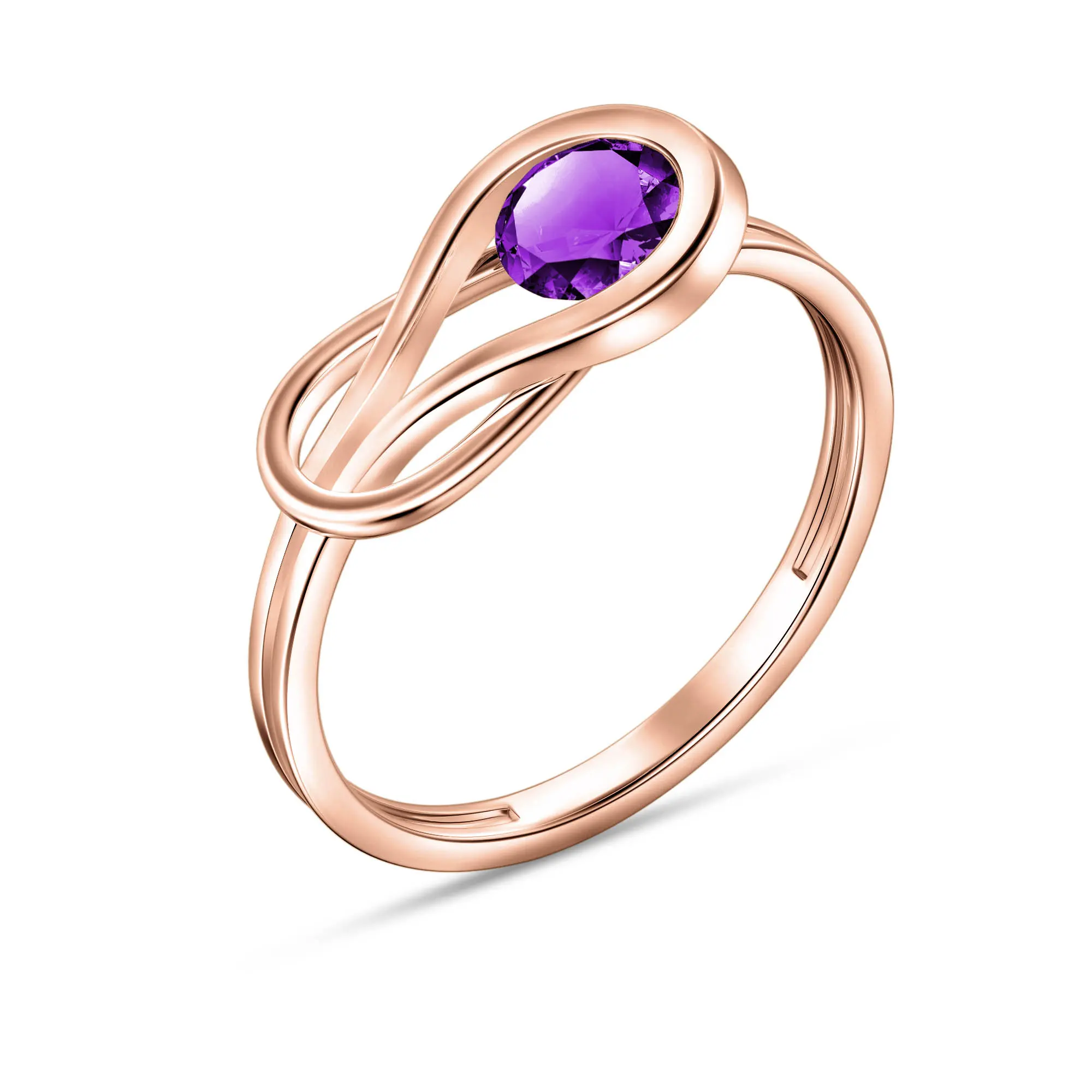 Amethyst Ring handcrafted in solid 18ct rose gold. Single 0.65 ct genuine amethyst. Round cut. Available from sizes H to Z including half sizes. Size: 7.1 mm (0.28 in). Material: 18ct Rose Gold. Total metal weight: 2.9 gr. 1 round cut amethyst (5 x 5 mm) = 0.65 ct. Colour: Purple. Stone cut: Round Cut. Anniversary: 6th Anniversary. Birthstone: February.