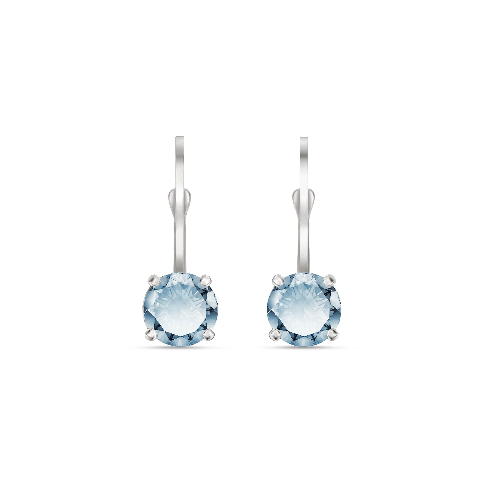 Aquamarine Leverback Earrings handcrafted in solid white gold. Two genuine aquamarines, total 1.2 ct for both earrings combined. Round cut. Size: 5.1 x 14.7 mm (0.2 x 0.58 in). Material: 9ct White Gold. Total metal weight: 1.5 gr. 2 round cut aquamarines (5 x 5 mm) = 1.2 ct total for pair. Colour: Blue. Stone cut: Round Cut. Anniversary: 19th Anniversary. Birthstone: March.