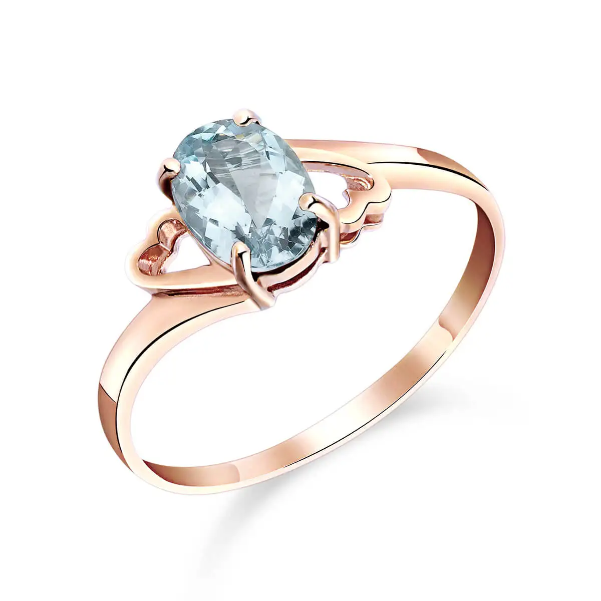 Aquamarine Ring handcrafted in solid rose gold. Single 0.75 ct genuine aquamarine. Oval cut. Available from sizes H to Z including half sizes. Size: 7.1 mm (0.28 in). Material: 9ct Rose Gold. Total metal weight: 1.0 gr. 1 oval cut aquamarine (7 x 5 mm) = 0.75 ct. Colour: Blue. Stone cut: Oval Cut. Anniversary: 19th Anniversary. Birthstone: March.