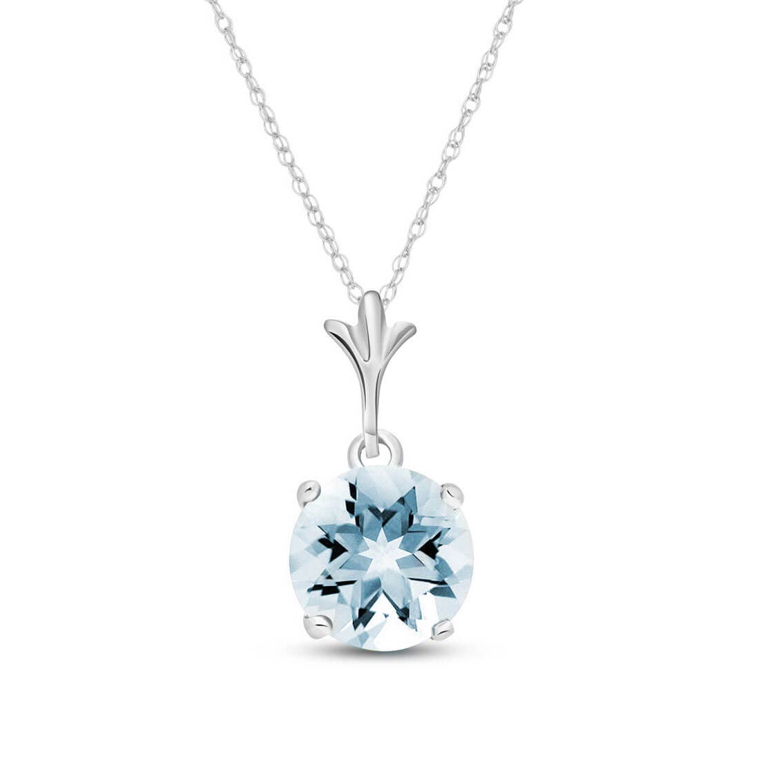 Aquamarine Pendant Necklace handcrafted in solid white gold. Single 1.15 ct genuine aquamarine. Round cut. The pendant hangs from a white gold double link rope chain with spring clasp. Size: 7.1 x 14.7 mm (0.28 x 0.58 in). Material: 9ct White Gold. Total metal weight: 1.64 gr. 1 round cut aquamarine (7 x 7 mm) = 1.15 ct. Colour: Blue. Stone cut: Round Cut. Anniversary: 19th Anniversary. Birthstone: March.