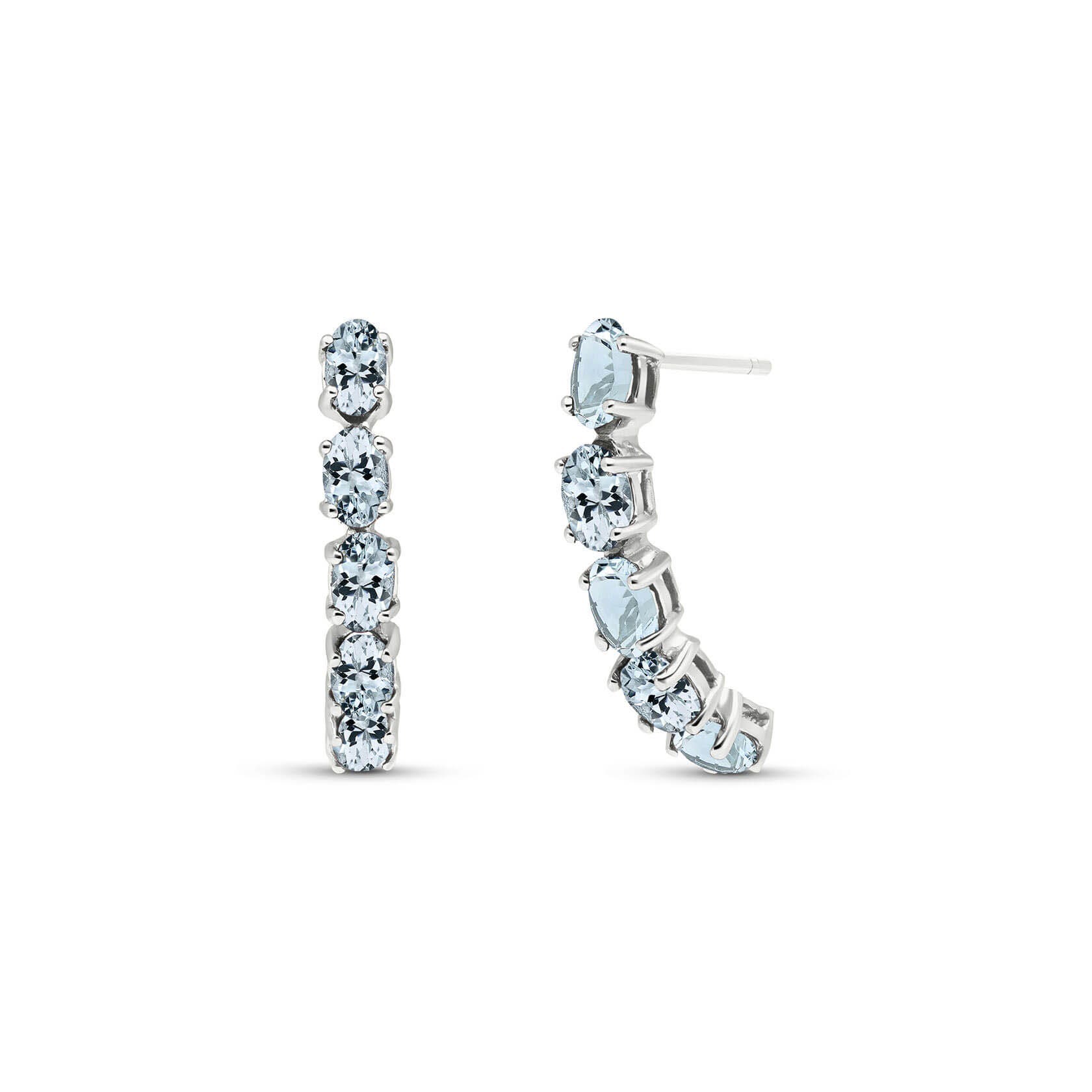 Aquamarine Stud Earrings handcrafted in solid white gold. Ten genuine aquamarines, total 2.5 ct for both earrings combined. Oval cut. Post with friction back to fasten. Size: 3.8 x 22.1 mm (0.15 x 0.87 in). Material: 9ct White Gold. Total metal weight: 2.0 gr. 10 oval cut aquamarines (5 x 3 mm) = 2.5 ct total for pair. Colour: Blue. Stone cut: Oval Cut. Anniversary: 19th Anniversary. Birthstone: March.