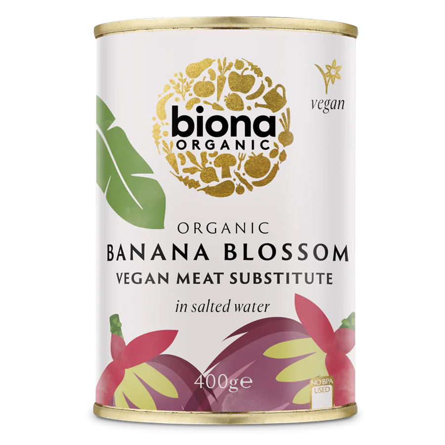 This organic banana blossom in salted water from Biona has a chunky flaky texture similar to jackfruit and makes a great vegan substitute for meat particularly for vegan fish and chips or in a curry or stir fry.Free from gluten wheat dairy soya