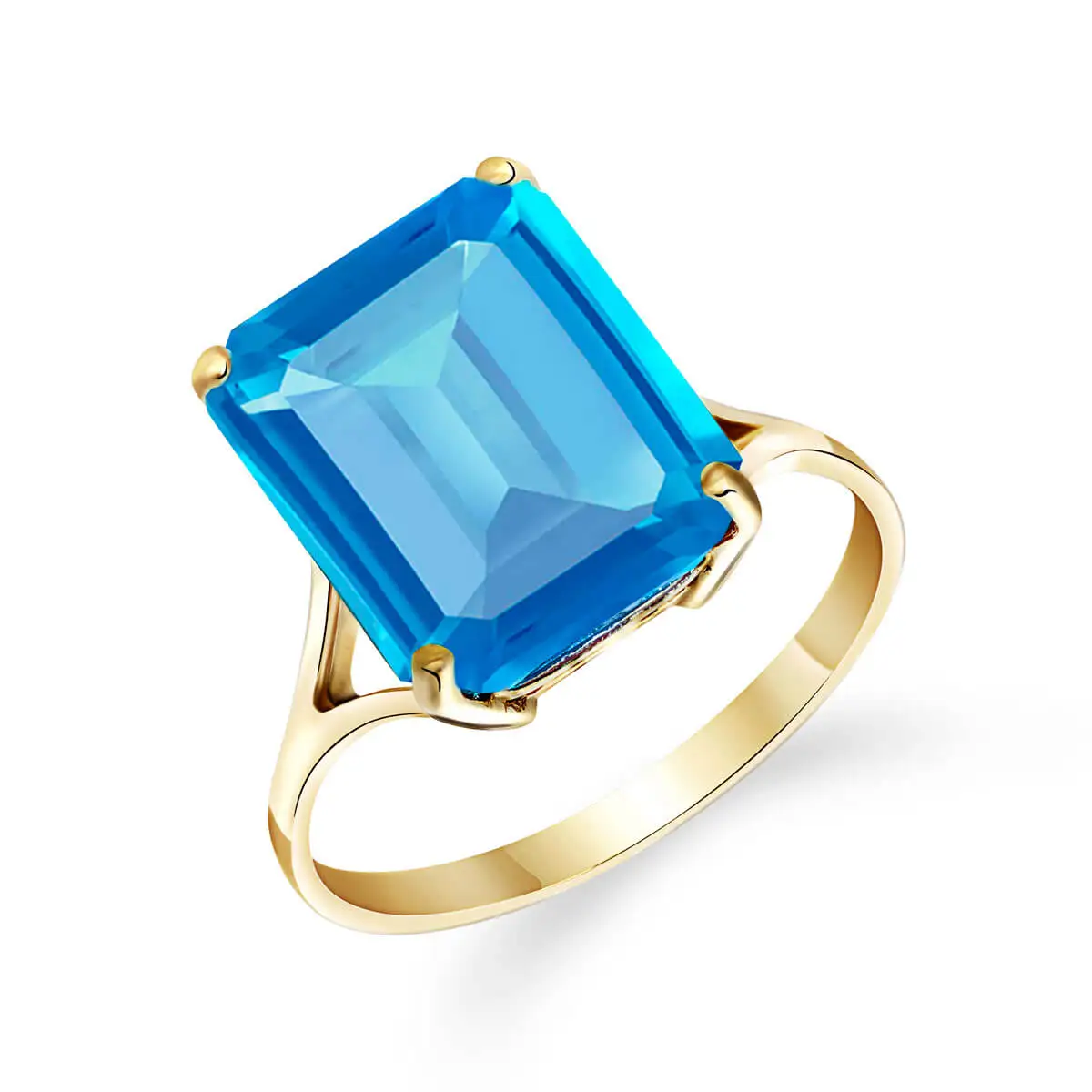 Blue Topaz Ring handcrafted in solid 18ct gold. Single 7 ct genuine topaz. Emerald cut. Available from sizes H to Z including half sizes. Size: 12.2 mm (0.48 in). Material: 18ct Gold. Total metal weight: 2.9 gr. 1 emerald cut blue topaz (12 x 10 mm) = 7 ct. Colour: Blue. Stone cut: Emerald Cut. Anniversary: 4th Anniversary. Birthstone: November.