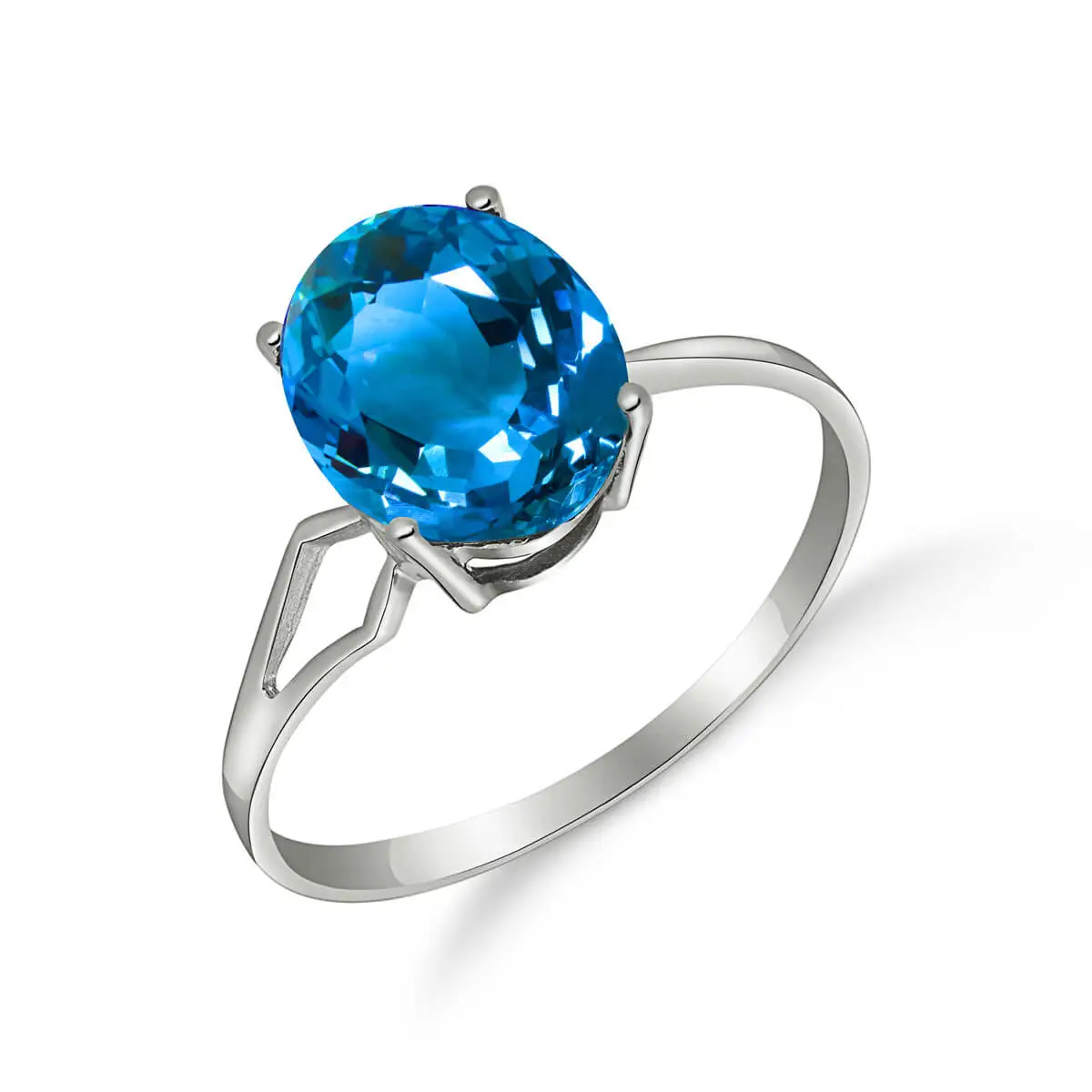 Blue Topaz Ring handcrafted in solid white gold. Single 2.2 ct genuine topaz. Oval cut. Available from sizes H to Z including half sizes. Size: 9.9 mm (0.39 in). Material: 9ct White Gold. Total metal weight: 1.5 gr. 1 oval cut blue topaz (10 x 8 mm) = 2.2 ct. Colour: Blue. Stone cut: Oval Cut. Anniversary: 4th Anniversary. Birthstone: November.