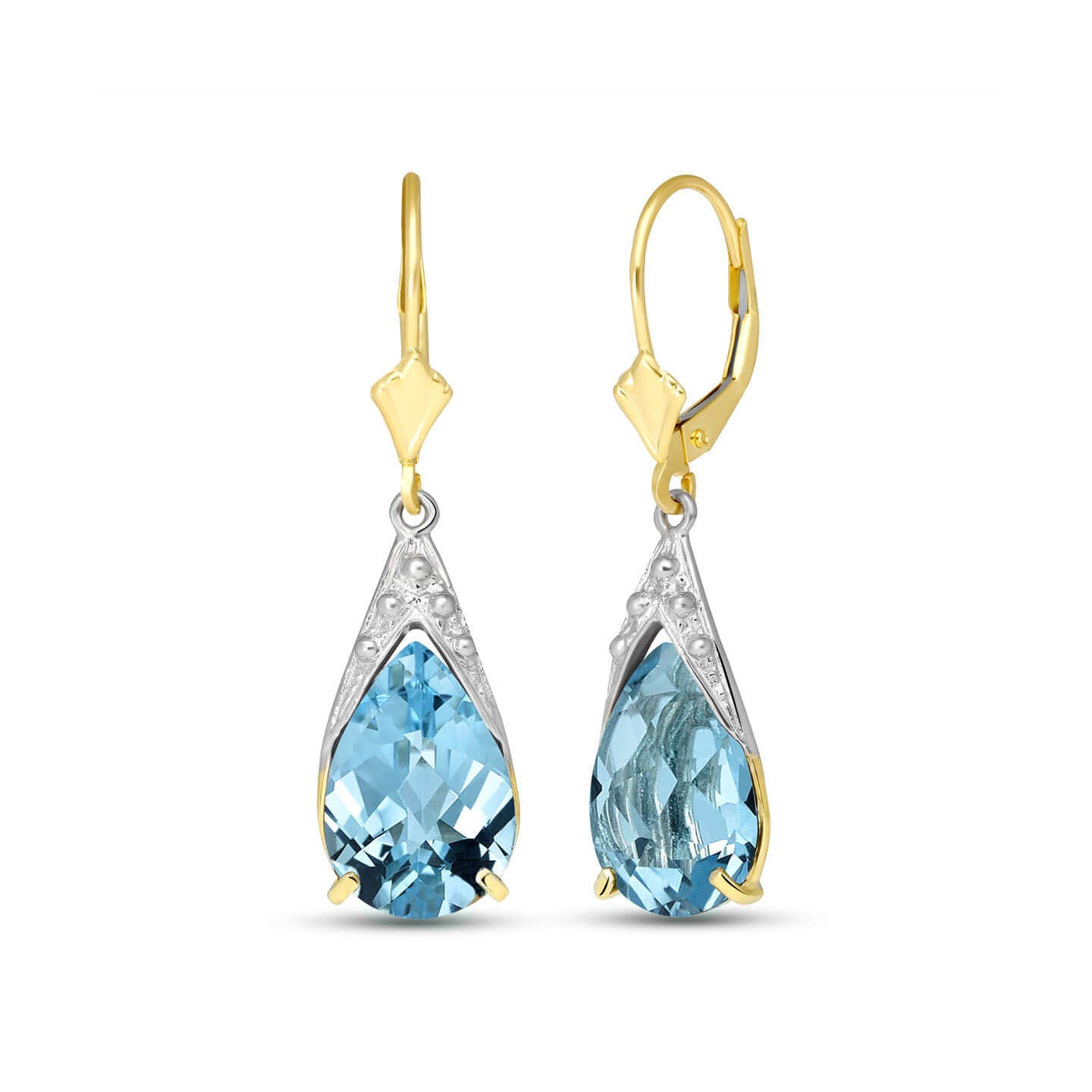 Blue Topaz Leverback Earrings handcrafted in solid gold. Two genuine topaz, total 12 ct for both earrings combined. Pear cut. Size: 9.1 x 34.8 mm (0.36 x 1.37 in). Material: 9ct Gold. Total metal weight: 3.6 gr. 2 pear cut blue topaz (9 x 13 mm) = 12 ct total for pair. Colour: Blue. Stone cut: Pear Cut. Anniversary: 4th Anniversary. Birthstone: November.