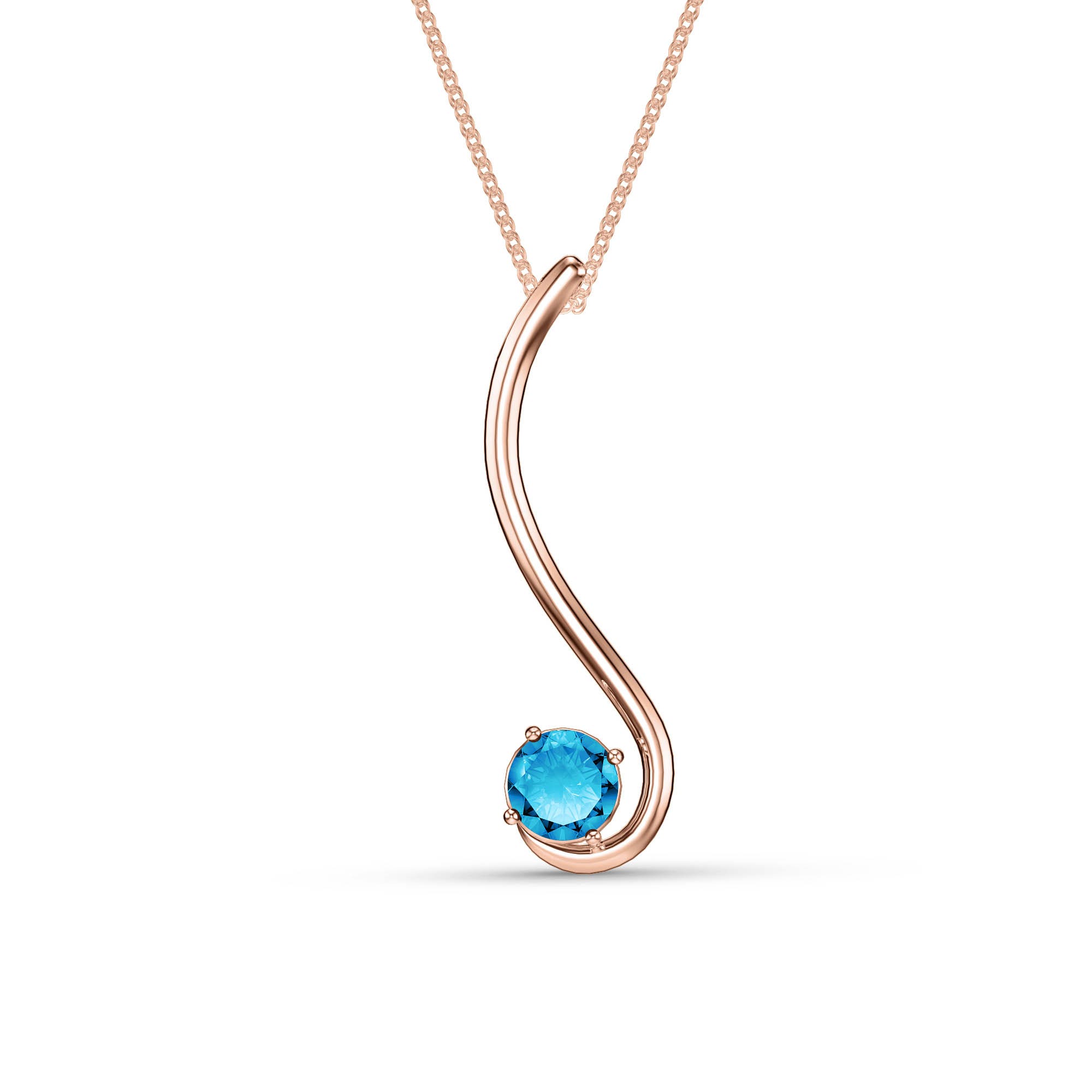 Blue Topaz Pendant Necklace handcrafted in rose gold plated 9ct gold. Single 0.55 ct genuine topaz. Round cut. The pendant is suspended from a rose gold double link rope chain with spring clasp. Size: 7.4 x 25.4 mm (0.29 x 1 in). Material: 9ct Rose Gold. Total metal weight: 1.54 gr. 1 round cut blue topaz (5 x 5 mm) = 0.55 ct. Colour: Blue. Stone cut: Round Cut. Anniversary: 4th Anniversary. Birthstone: November.