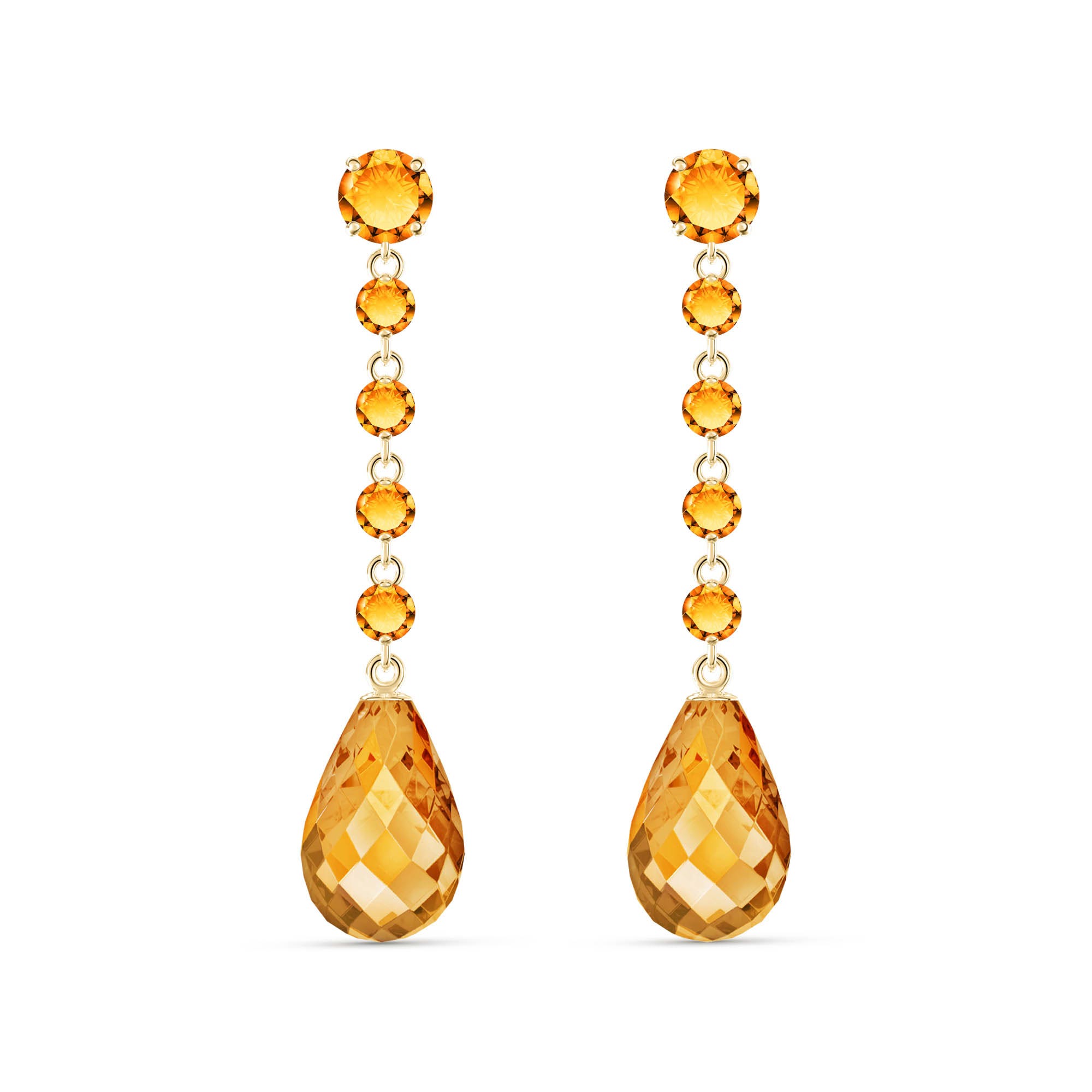 Citrine Chandelier Earrings handcrafted in solid gold. Twelve gemstones, total 23 ct for both earrings combined. Round cut. Size: 9.1 x 46.7 mm (0.36 x 1.84 in). Material: 9ct Gold. Total metal weight: 5.3 gr. 2 round cut citrines (5 x 5 mm) = 1 ct total for pair. 8 round cut citrines (3 x 3 mm) = 1 ct total for pair. 2 briolette cut citrines (14 x 9 mm) = 21 ct total for pair. Colour: Orange. Stone cut: Round Cut. Anniversary: 13th Anniversary. Birthstone: November.