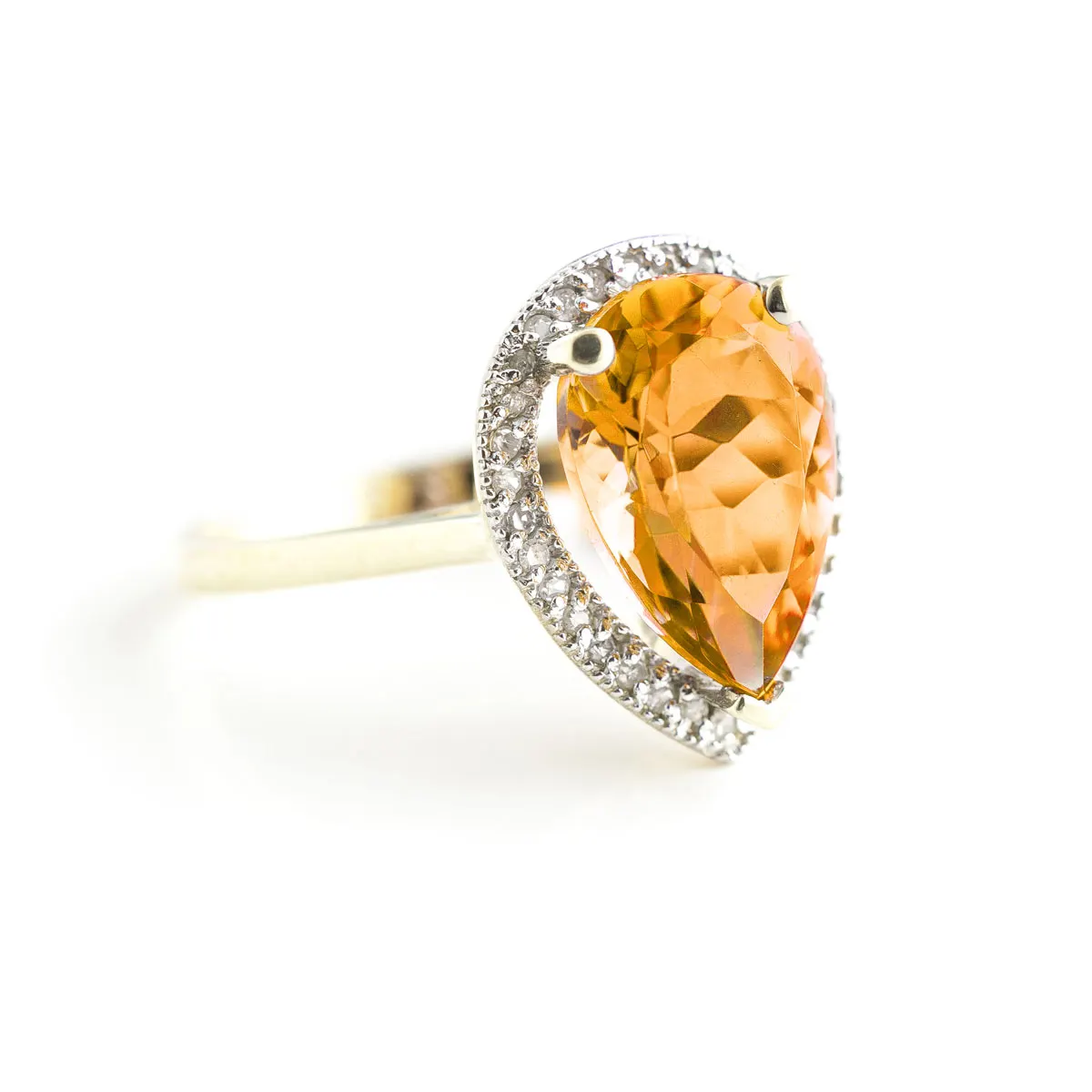 Citrine & Diamond Ring handcrafted in solid 18ct gold. Single 3.25 ct genuine citrine, 32 diamonds, total 0.16 ct. Pear cut. Available from sizes H to Z including half sizes. Size: 16.3 mm (0.64 in). Material: 18ct Gold. Total metal weight: 4.4 gr. 1 pear cut citrine (13 x 9 mm) = 3.25 ct. 32 round cut diamonds (K colour, I3 clarity) = 0.16 ct total. Colour: Orange. Stone cut: Pear Cut. Anniversary: 13th Anniversary. Birthstone: November.