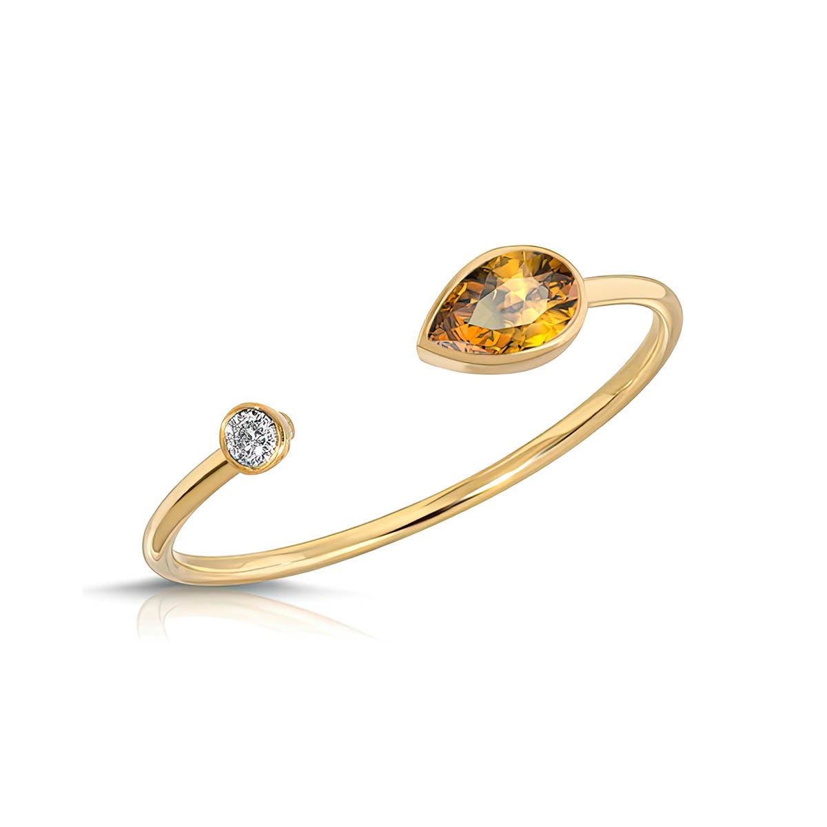 Citrine & Diamond Ring handcrafted in 9ct Gold. Single 0.2 ct genuine citrine, single 0.03 ct diamond. Pear cut. Available from sizes H to Z including half sizes. Size: 1 x 18.8 mm (0.04 x 0.74 in). Material: 9ct Gold. Total metal weight: 0.5 gr. 1 pear cut citrine (3 x 5 mm) = 0.2 ct. 1 round brilliant cut diamond (H colour, I3 clarity) = 0.03 ct. Colour: Orange. Stone cut: Pear cut. Anniversary: 13th Anniversary. Birthstone: November.