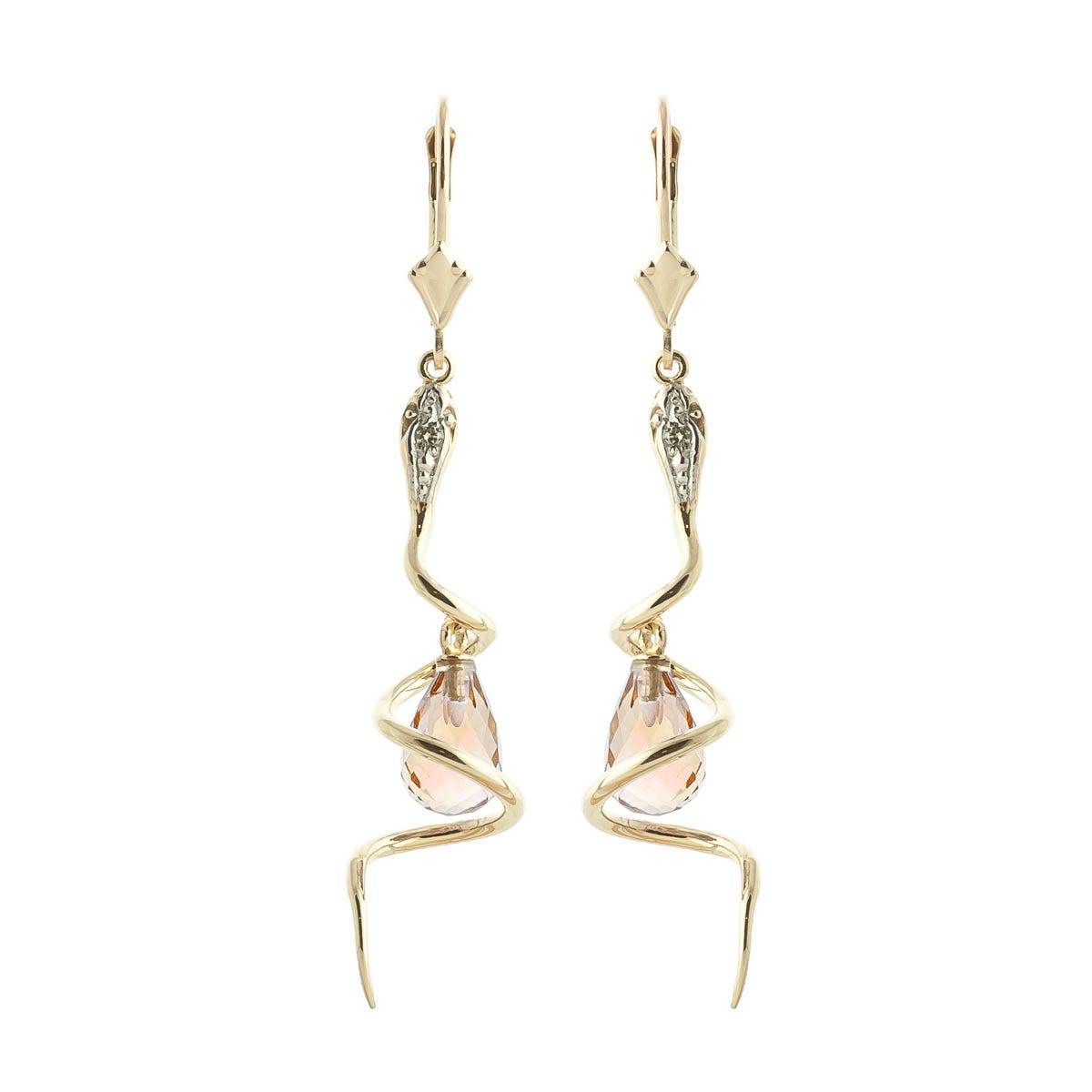 Citrine & Diamond Earrings handcrafted in solid gold. Two genuine citrines, total 4.5 ct, two diamonds, total 0.06 ct for both earrings combined. Briolette cut. Size: 10.2 x 52.6 mm (0.4 x 2.07 in). Material: 9ct Gold. Total metal weight: 4.2 gr. 2 briolette cut citrines (9 x 6 mm) = 4.5 ct total for pair. 2 round cut diamonds (G colour, SI2 clarity) = 0.06 ct total for pair. Colour: Orange. Stone cut: Briolette Cut. Anniversary: 13th Anniversary. Birthstone: November.