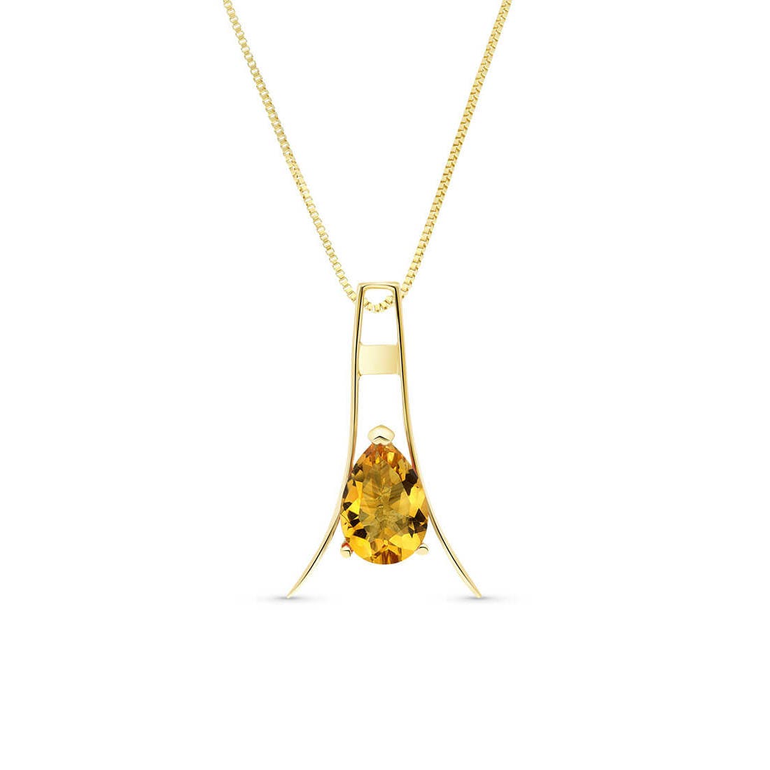 Citrine Pendant Necklace handcrafted in solid gold. Single 1.5 ct genuine citrine. Pear cut. The pendant is suspended from a gold box chain with spring clasp. Size: 13.2 x 22.1 mm (0.52 x 0.87 in). Material: 9ct Gold. Total metal weight: 2.4 gr. 1 pear cut citrine (9 x 6 mm) = 1.5 ct. Colour: Orange. Stone cut: Pear Cut. Anniversary: 13th Anniversary. Birthstone: November.
