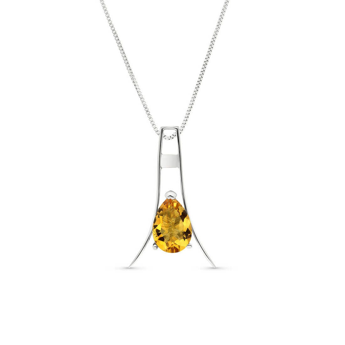 Citrine Pendant Necklace handcrafted in solid white gold. Single 1.5 ct genuine citrine. Pear cut. The pendant is suspended from a white gold box chain with spring clasp. Size: 13.2 x 22.1 mm (0.52 x 0.87 in). Material: 9ct White Gold. Total metal weight: 2.4 gr. 1 pear cut citrine (9 x 6 mm) = 1.5 ct. Colour: Orange. Stone cut: Pear Cut. Anniversary: 13th Anniversary. Birthstone: November.