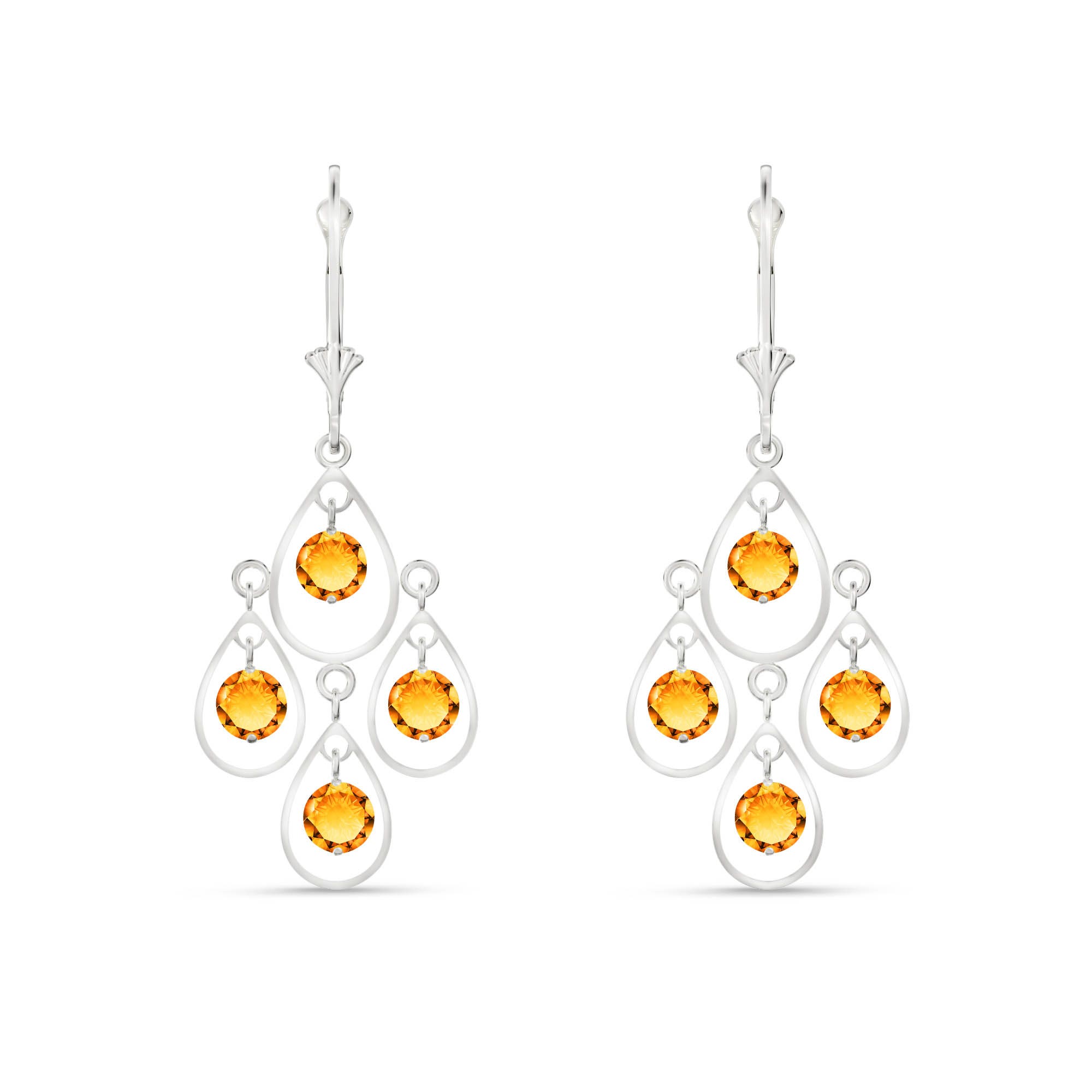 Citrine Chandelier Earrings handcrafted in solid white gold. Eight genuine citrines, total 2.4 ct for both earrings combined. Round cut. Size: 18 x 41.1 mm (0.71 x 1.62 in). Material: 9ct White Gold. Total metal weight: 2.7 gr. 8 round cut citrines (4 x 4 mm) = 2.4 ct total for pair. Colour: Orange. Stone cut: Round Cut. Anniversary: 13th Anniversary. Birthstone: November.