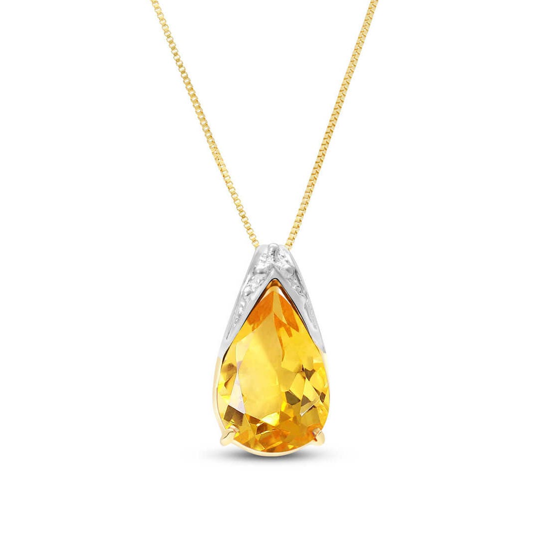 Citrine Pendant Necklace handcrafted in solid gold. Single 5 ct genuine citrine. Pear cut. The pendant hangs from a gold box chain with spring clasp. Size: 9.1 x 15.2 mm (0.36 x 0.6 in). Material: 9ct Gold. Total metal weight: 2.5 gr. 1 pear cut citrine (9 x 13 mm) = 5 ct. Colour: Orange. Stone cut: Pear Cut. Anniversary: 13th Anniversary. Birthstone: November.