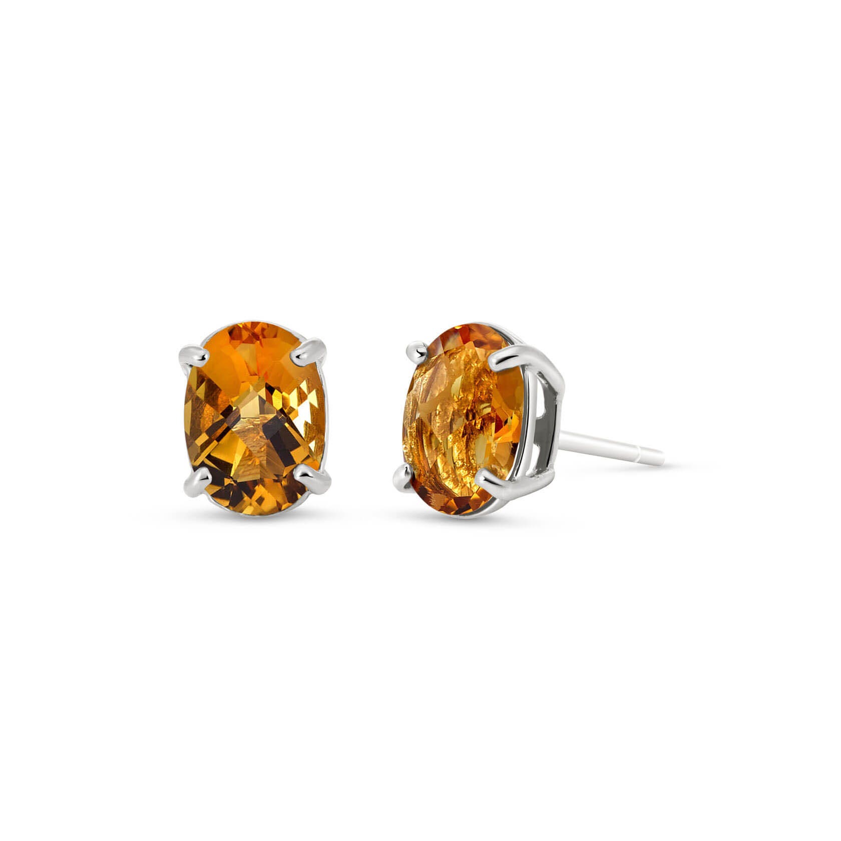 Citrine Stud Earrings handcrafted in solid white gold. Two genuine citrines, total 1.8 ct for both earrings combined. Oval cut. Post with friction back to fasten. Size: 5.1 x 7.1 mm (0.2 x 0.28 in). Material: 9ct White Gold. Total metal weight: 0.9 gr. 2 oval cut citrines (7 x 5 mm) = 1.8 ct total for pair. Colour: Orange. Stone cut: Oval Cut. Anniversary: 13th Anniversary. Birthstone: November.