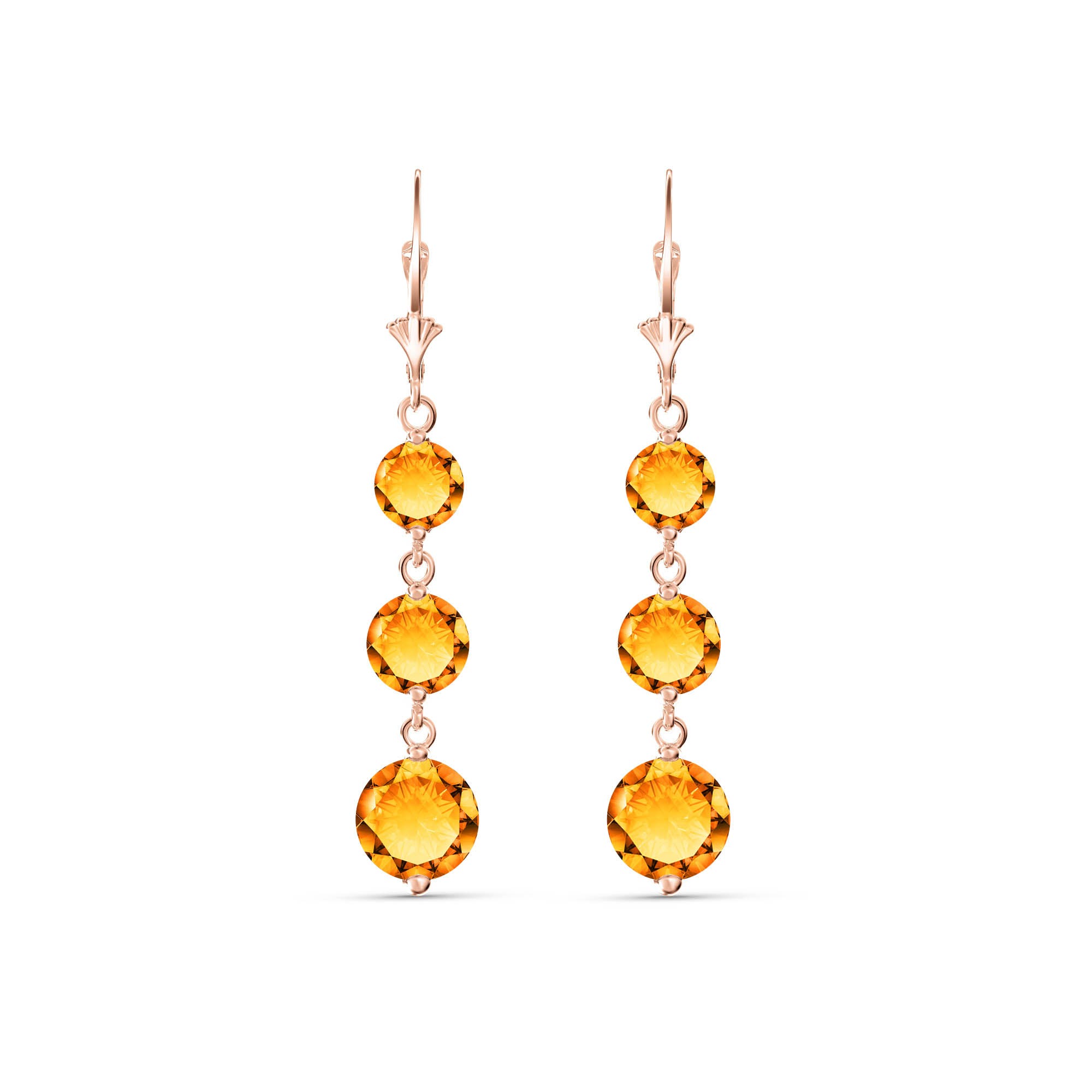 Chandelierdrop Earrings handcrafted in rose gold plated 9ct gold. Six gemstones, total 7.2 ct for both earrings combined. Round cut. Size: 7.1 x 43.2 mm (0.28 x 1.7 in). Material: 9ct Rose Gold. Total metal weight: 2.6 gr. 2 round cut citrines (7 x 7 mm) = 3.9 ct total for pair. 2 round cut citrines (6 x 6 mm) = 2.1 ct total for pair. 2 round cut citrines (5 x 5 mm) = 1.2 ct total for pair. Colour: Orange. Stone cut: Round Cut. Anniversary: 13th Anniversary. Birthstone: November.