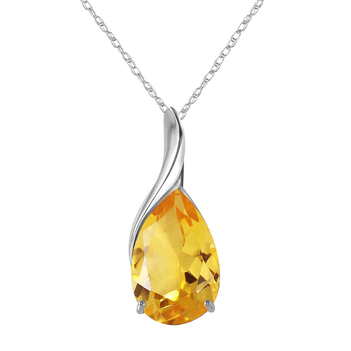 Citrine Pendant Necklace handcrafted in solid white gold. Single 5 ct genuine citrine. Pear cut. The pendant hangs from a white gold double link rope chain with spring clasp. Size: 8.6 x 19.1 mm (0.34 x 0.75 in). Material: 9ct White Gold. Total metal weight: 2.14 gr. 1 pear cut citrine (12 x 8 mm) = 5 ct. Colour: Orange. Stone cut: Pear Cut. Anniversary: 13th Anniversary. Birthstone: November.