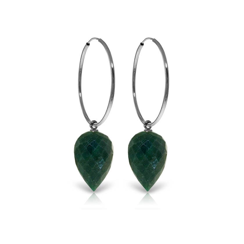 Corundum Drop Earrings handcrafted in solid white gold. Two genuine corundum, total 25.8 ct for both earrings combined. Pointed briolette cut. Size: 9.9 x 40.6 mm (0.39 x 1.6 in). Material: 9ct White Gold. Total metal weight: 5.0 gr. 2 pointed briolette cut corundum (15 x 10 mm) = 25.8 ct total for pair. Colour: Green. Stone cut: Pointed Briolette Cut.