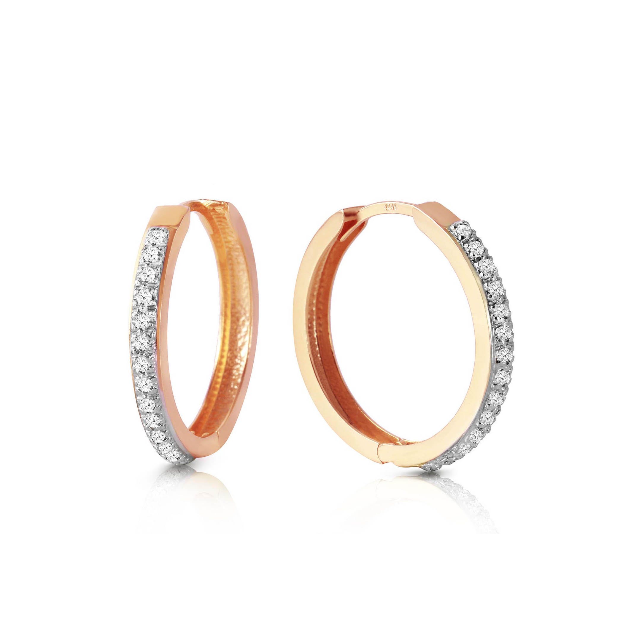 Diamond Hoop Huggie Earrings handcrafted in rose gold plated 9ct gold. 28 diamonds, total 0.28 ct for both earrings combined. Round cut. Size: 3 x 23.6 mm (0.12 x 0.93 in). Material: 9ct Rose Gold. Total metal weight: 3.2 gr. 28 round cut diamonds (G colour, I3 clarity) = 0.28 ct total for pair. Colour: Clear. Diamond colour: G. Stone cut: Round Cut. Anniversary: 10th Anniversary, 60th Anniversary. Birthstone: April.