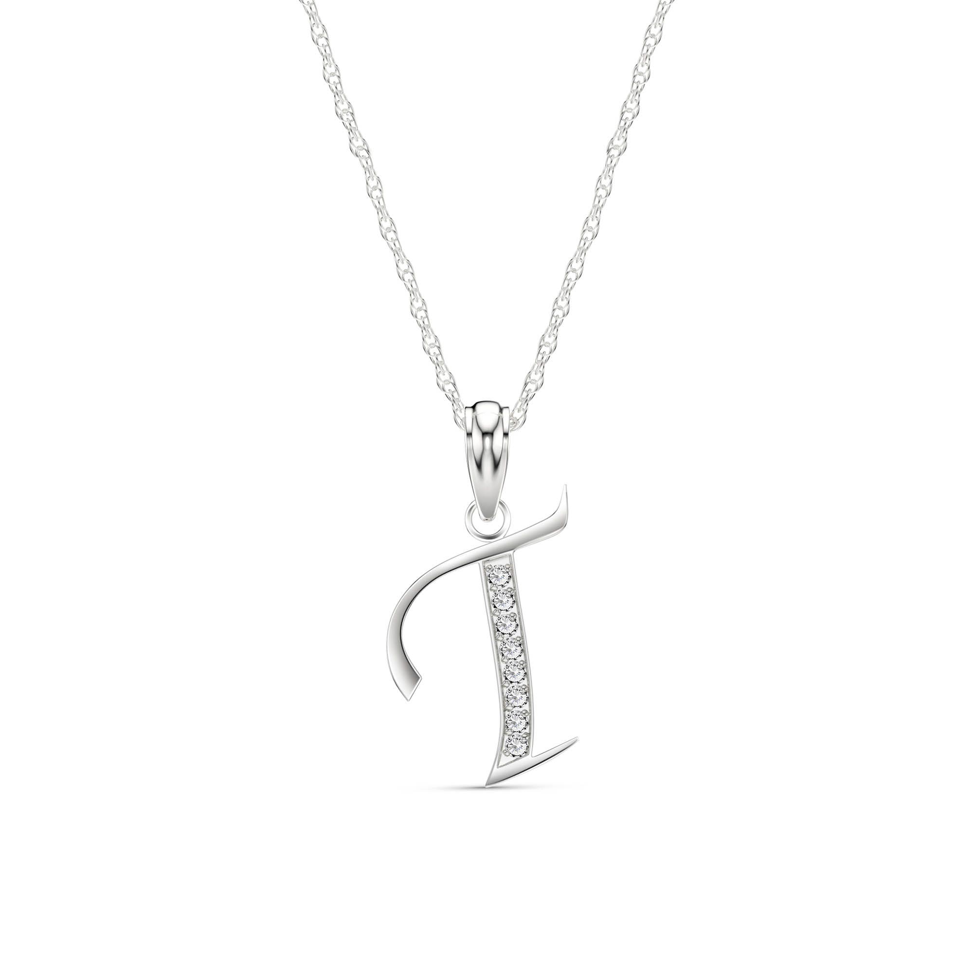 Diamond Pendant Necklace handcrafted in solid white gold. Eight diamonds, total 0.04 ct. Round cut. The pendant is suspended from a white gold double link rope chain with spring clasp. Size: 13.2 x 20.8 mm (0.52 x 0.82 in). Material: 9ct White Gold. Total metal weight: 1.44 gr. 8 round cut diamonds (J colour, SI3 clarity) = 0.04 ct total. Colour: Clear. Diamond colour: J. Stone cut: Round Cut. Anniversary: 10th Anniversary, 60th Anniversary. Birthstone: April.