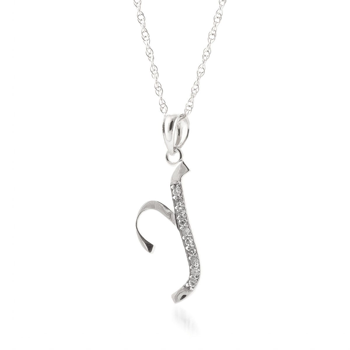 Diamond Pendant Necklace handcrafted in solid white gold. Ten diamonds, total 0.06 ct. Round cut. The pendant hangs from a white gold double link rope chain with spring clasp. Size: 9.7 x 24.9 mm (0.38 x 0.98 in). Material: 9ct White Gold. Total metal weight: 1.44 gr. 10 round cut diamonds (J colour, SI3 clarity) = 0.06 ct total. Colour: Clear. Diamond colour: J. Stone cut: Round Cut. Anniversary: 10th Anniversary, 60th Anniversary. Birthstone: April.