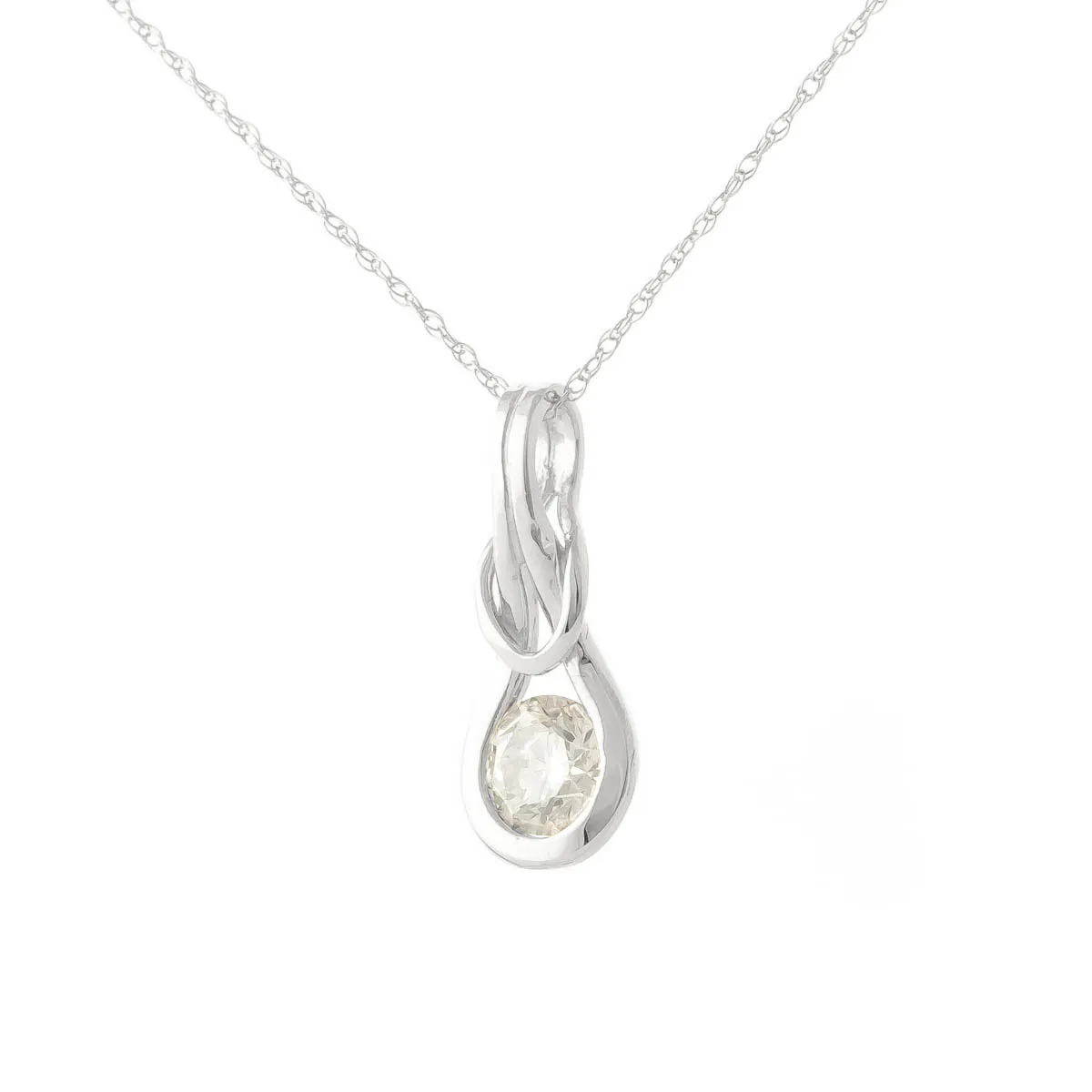 Diamond Pendant Necklace handcrafted in solid white gold. Single 0.5 ct diamond. Round brilliant cut. The pendant hangs from a white gold double link rope chain with spring clasp. Size: 6.9 x 18.5 mm (0.27 x 0.73 in). Material: 9ct White Gold. Total metal weight: 3.64 gr. 1 round brilliant cut diamond (J colour, SI2 clarity) = 0.5 ct. Colour: Clear. Diamond colour: J. Stone cut: Round Cut. Anniversary: 10th Anniversary, 60th Anniversary. Birthstone: April.