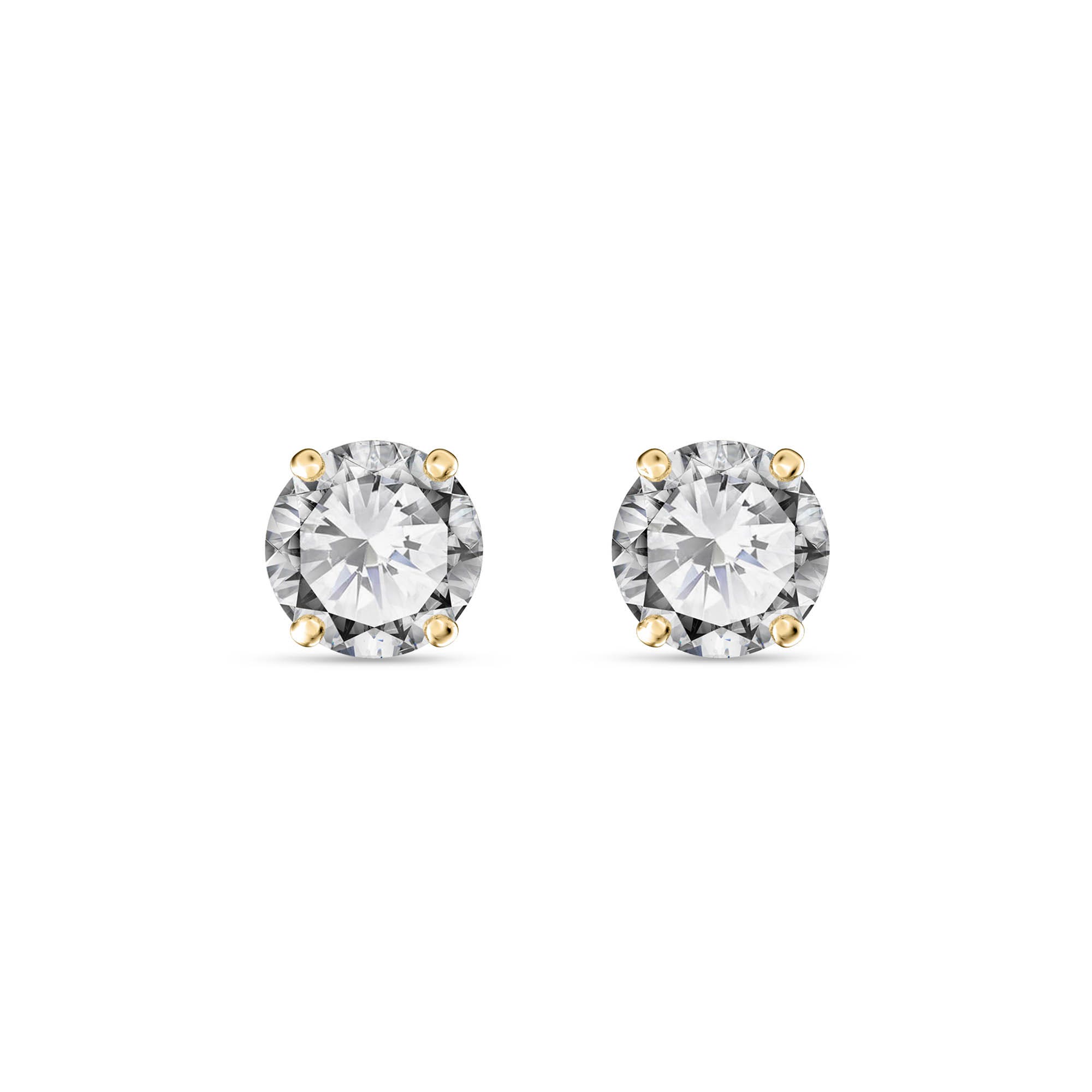 Diamond Stud Earrings handcrafted in solid gold. Two diamonds, total 0.7 ct for both earrings combined. Round cut. Post with friction back to fasten. Size: 4.3 x 4.3 mm (0.17 x 0.17 in). Material: 9ct Gold. Total metal weight: 3.0 gr. 2 round cut diamonds (H colour, SI2 clarity) = 0.7 ct total for pair. Colour: Clear. Diamond colour: H. Stone cut: Round Cut. Anniversary: 10th Anniversary, 60th Anniversary. Birthstone: April.