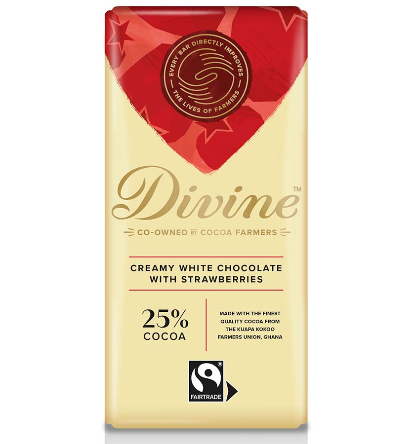 Give the dark a break and treat yourself to a lovely bar of white chocolate; made with love and care by the seasoned chocolatiers at Divine. Snap off a square of this exquisitely creamy white chocolate and let it melt away on your tongue; unfurling i