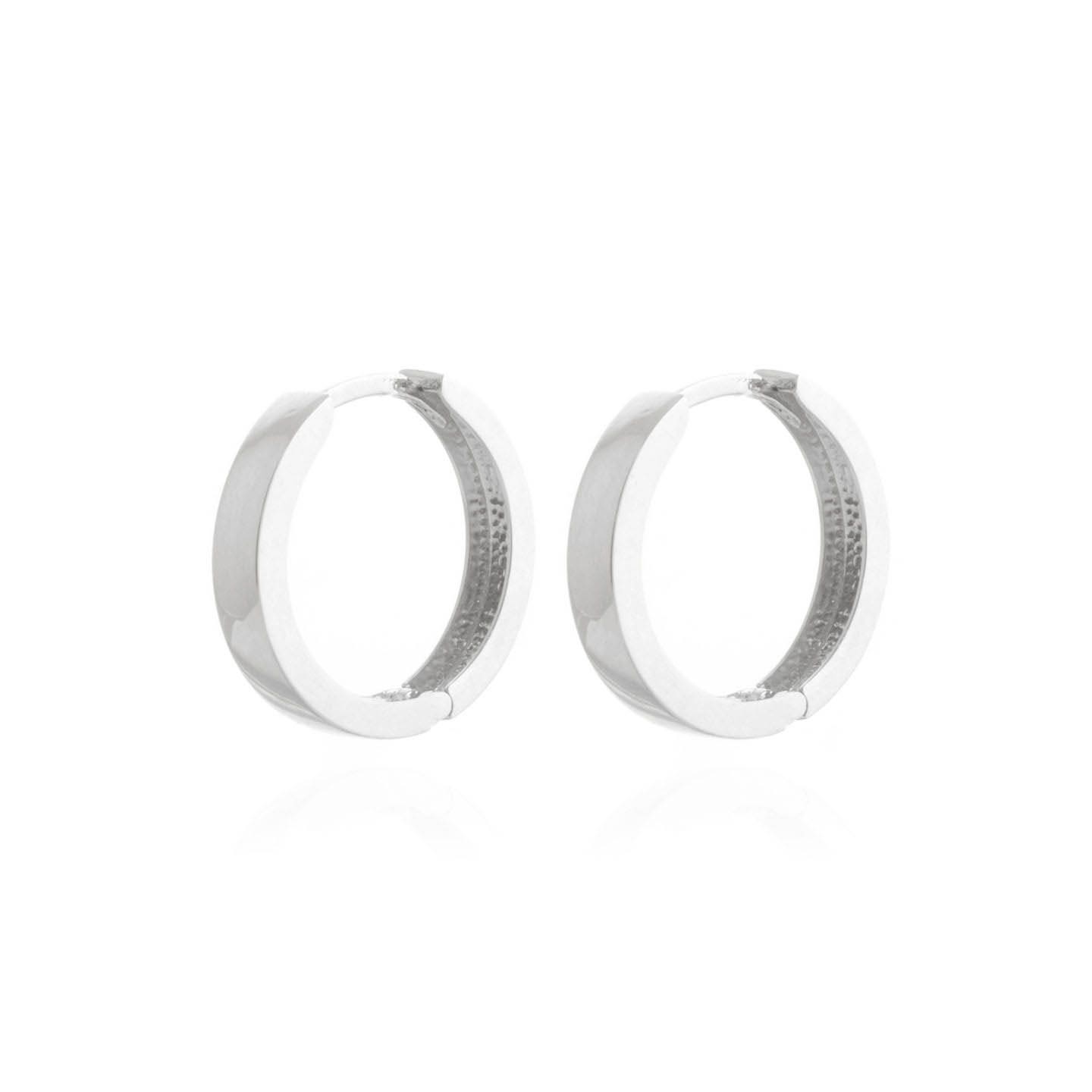 Hoop Earrings handcrafted in solid white gold. Total metal weight 2.10 gr for both earrings combined. Size: 3.3 x 18.8 mm (0.13 x 0.74 in). Material: 9ct White Gold. Total metal weight: 2.1 gr.
