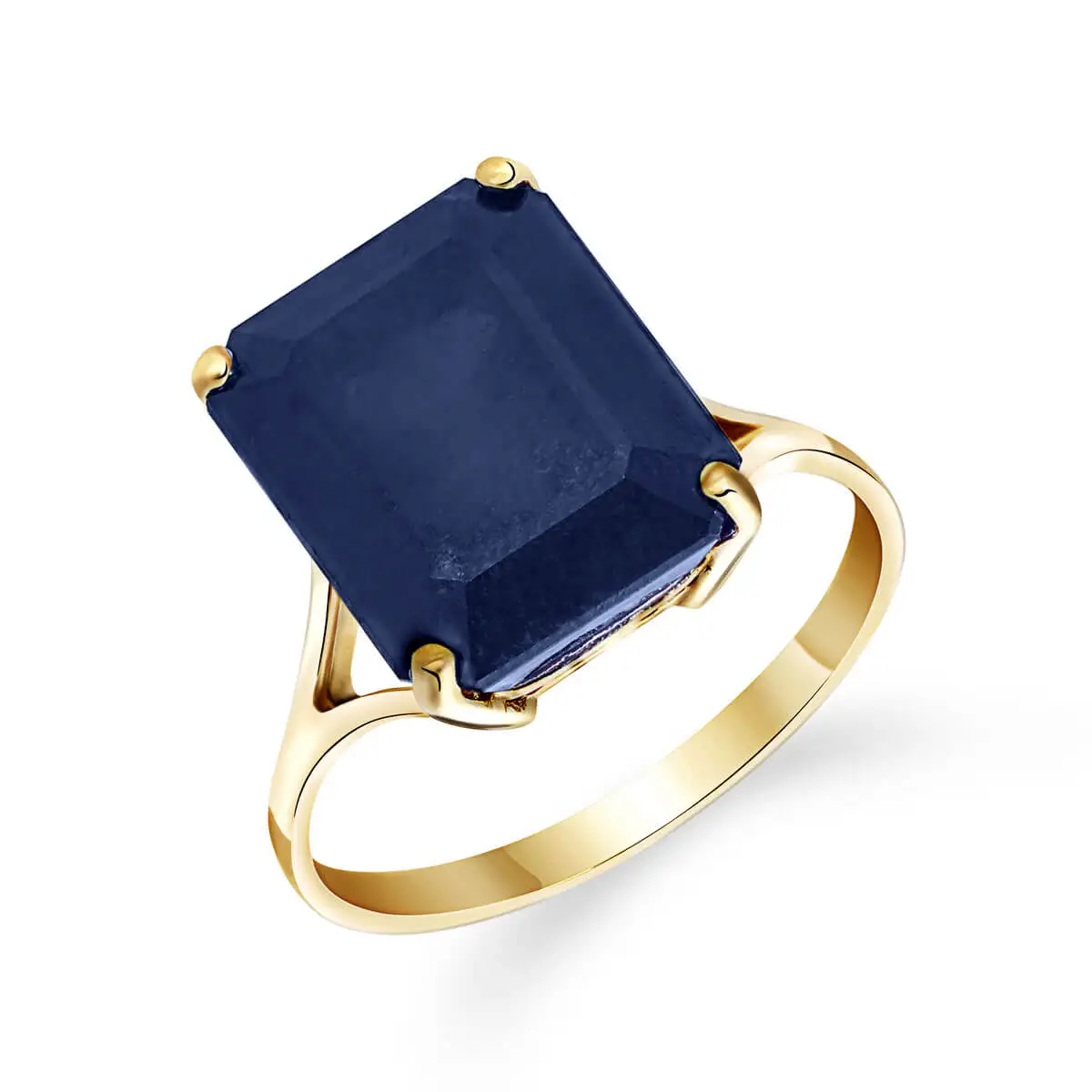 Sapphire Ring handcrafted in solid 18ct gold. Single 7 ct genuine sapphire. Emerald cut. Available from sizes H to Z including half sizes. Size: 12.2 mm (0.48 in). Material: 18ct Gold. Total metal weight: 4.2 gr. 1 emerald cut sapphire (12 x 10 mm) = 7 ct. Colour: Blue. Stone cut: Emerald Cut. Anniversary: 5th Anniversary, 45th Anniversary. Birthstone: September.