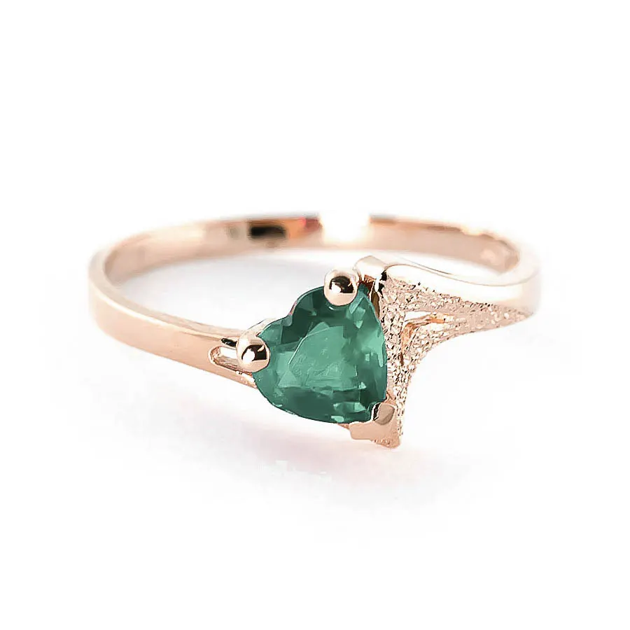 Emerald Ring handcrafted in solid rose gold. Single 1 ct genuine emerald. Heart shaped. Available from sizes H to Z including half sizes. Size: 9.4 mm (0.37 in). Material: 9ct Rose Gold. Total metal weight: 1.9 gr. 1 heart shaped emerald (6 x 6 mm) = 1 ct. Colour: Green. Stone cut: Heart Shaped. Anniversary: 20th Anniversary, 35th Anniversary. Birthstone: May.