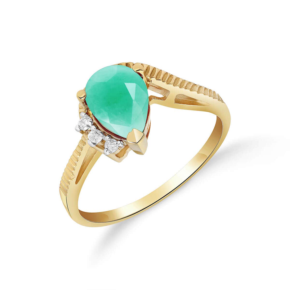 Emerald & Diamond Ring handcrafted in solid 18ct gold. Single 1 ct genuine emerald, three diamonds, total 0.02 ct. Pear cut. Available from sizes H to Z including half sizes. Size: 10.9 mm (0.43 in). Material: 18ct Gold. Total metal weight: 3.7 gr. 1 pear cut emerald (9 x 6 mm) = 1 ct. 3 round cut diamonds (K colour, SI2 clarity) = 0.02 ct total. Colour: Green. Stone cut: Pear Cut. Anniversary: 20th Anniversary, 35th Anniversary. Birthstone: May.