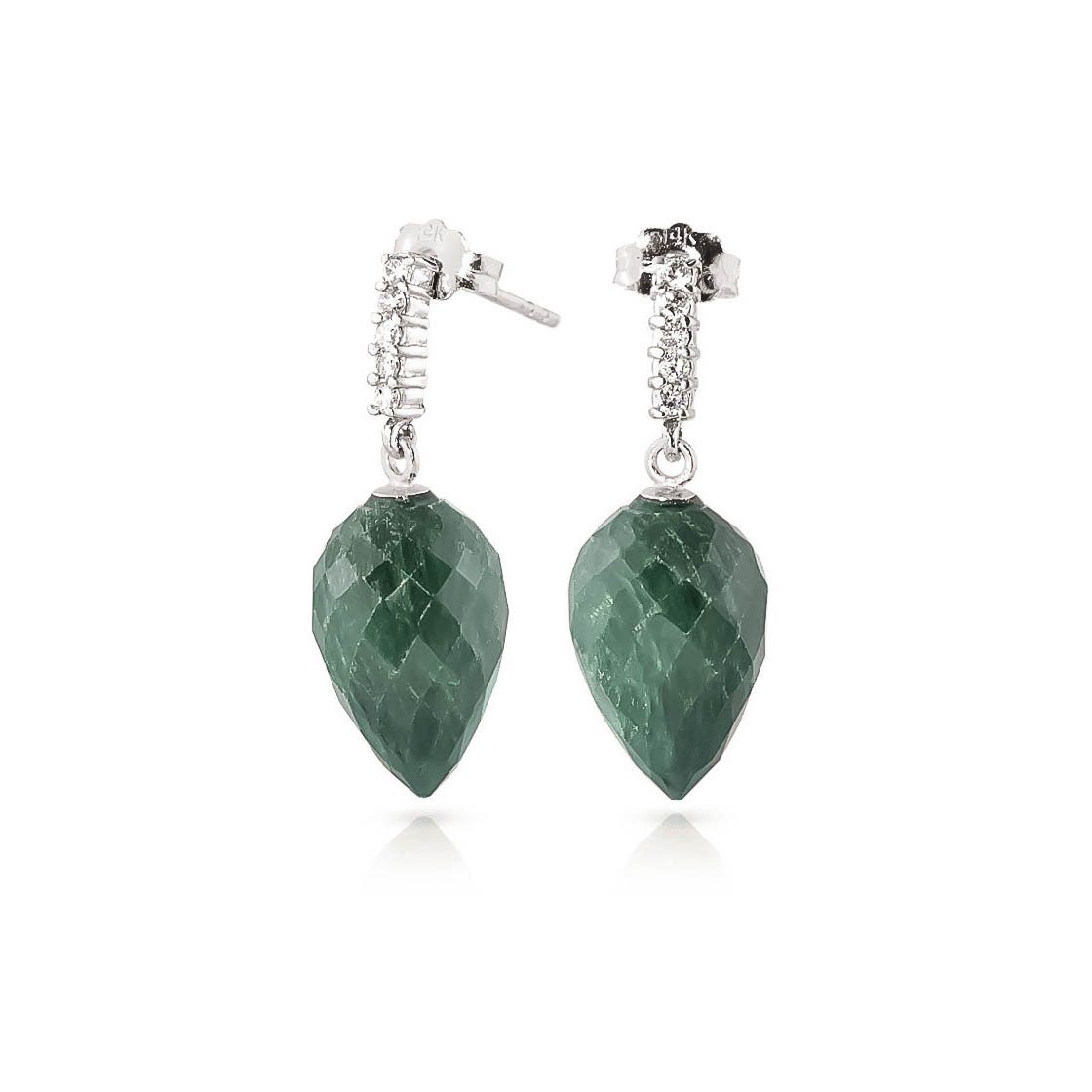Emerald & Diamond Stud Earrings handcrafted in solid white gold. Two genuine emeralds, total 25.8 ct, ten diamonds, total 0.15 ct for both earrings combined. Pointed briolette cut. Post with friction back to fasten. Size: 10.2 x 27.2 mm (0.4 x 1.07 in). Material: 9ct White Gold. Total metal weight: 5.3 gr. 2 pointed briolette cut emeralds (15 x 10 mm) = 25.8 ct total for pair. 10 round cut diamonds (K colour, I3 clarity) = 0.15 ct total for pair. Colour: Green. Stone cut: Pointed Briolette Cut. Anniversary: 20th Anniversary, 35th Anniversary. Birthstone: May.