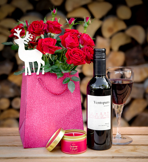 Send season’s greetings with this wonderful Christmas plant gift to warm any home this Christmas. Enjoy the soothing smell of the scented candle, whilst clinking glasses sipping on the rich Merlot. The festive rose plant is packaged in a seasonal bag gift for the perfect presentation and a Christmas gift to enjoy through the holiday season. This Christmas gift includes: Red Rose plant in festive gift bag Luis Felipe Edwards Merlot 37.5cl Cranberry and Ginger Candle in tin with a 20 hour burn time