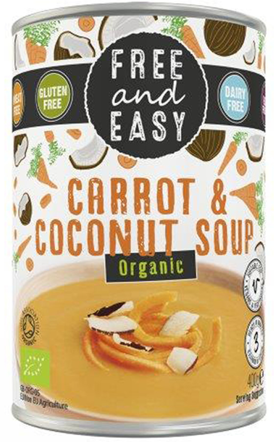 Certified organic carrot & coconut soup free from gluten wheat dairy soya and nuts. This nutritious and filling soup is a tasty healthy option and is also suitable for vegans.400g2 servings per canEmpty contents in a saucepan and heat gently